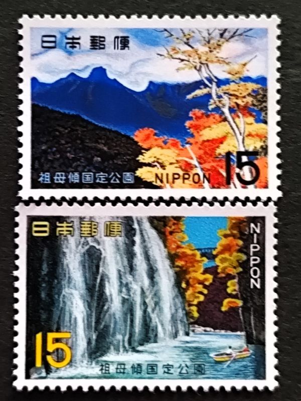 [25091105]【国定公園 祖母傾】単片2種「祖母山の遠景・高千穂峡」15円×2 1967年発行 美品