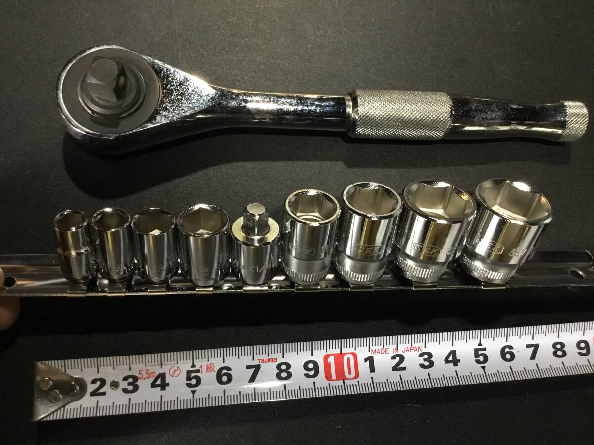 展示品格安販売です傷など有るかもですが全て新品です。PRO-AUTO製3/8ハンドル回転式ラチェット&ソケットセットです。ラチェットのハンドルを回転させると差し込み部が回る構造です。qソケットは7、8、10、12mmが1/4で3/8から1/4への変換アダプター付き。13、14、17、19mmは3/8です。。NC、NRでお願い致します。ヤマト便の着払いで送らせて頂きます。その他格安工具出品しておりますのでご覧下さい。落札されましたら、お手数ですが間違いを避ける為に落札された商品を取引ナビでご連絡お願い致します。