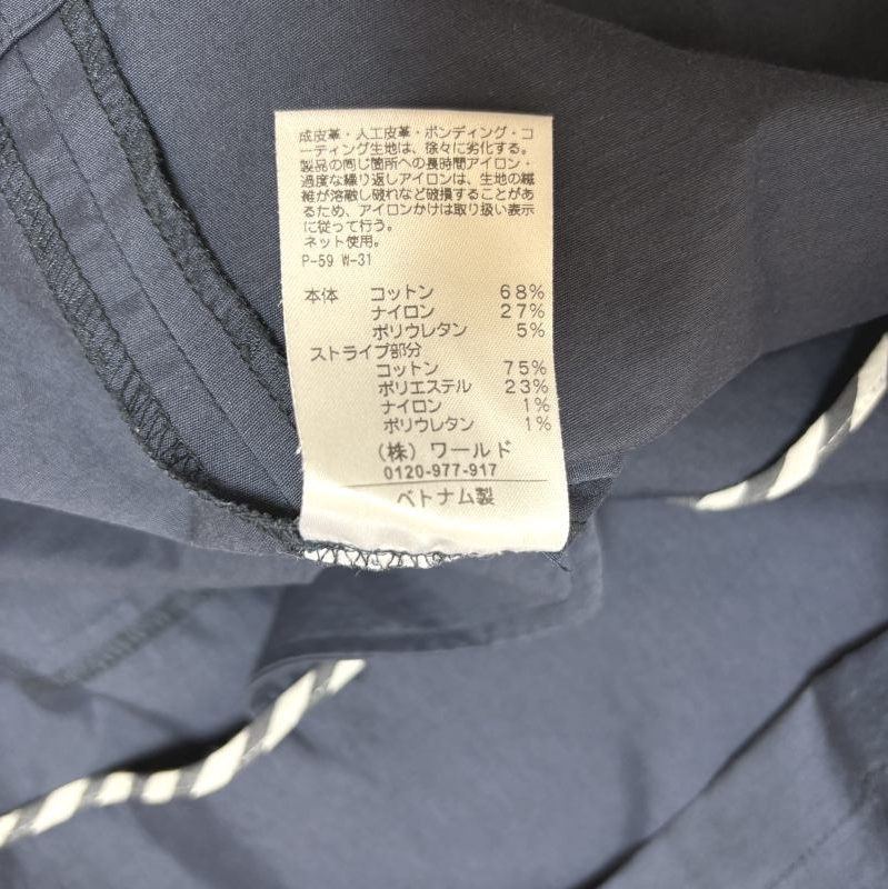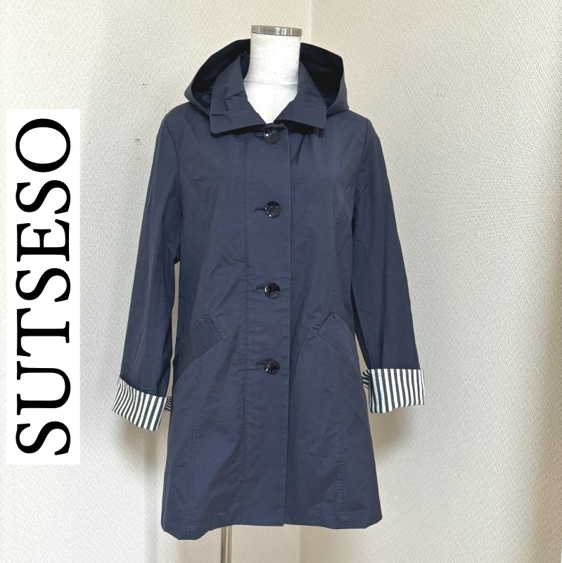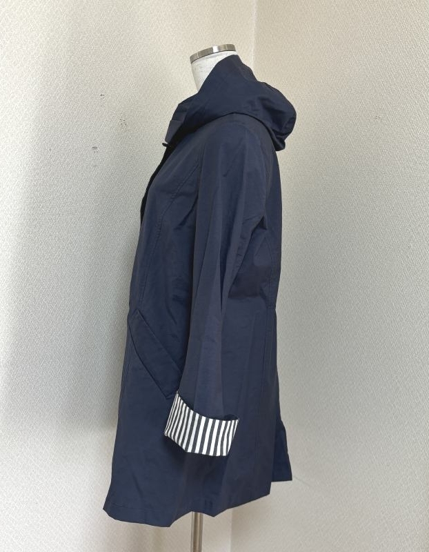 ネイビーカラーが上品な印象を与え、幅広いコーディネートにマッチします。