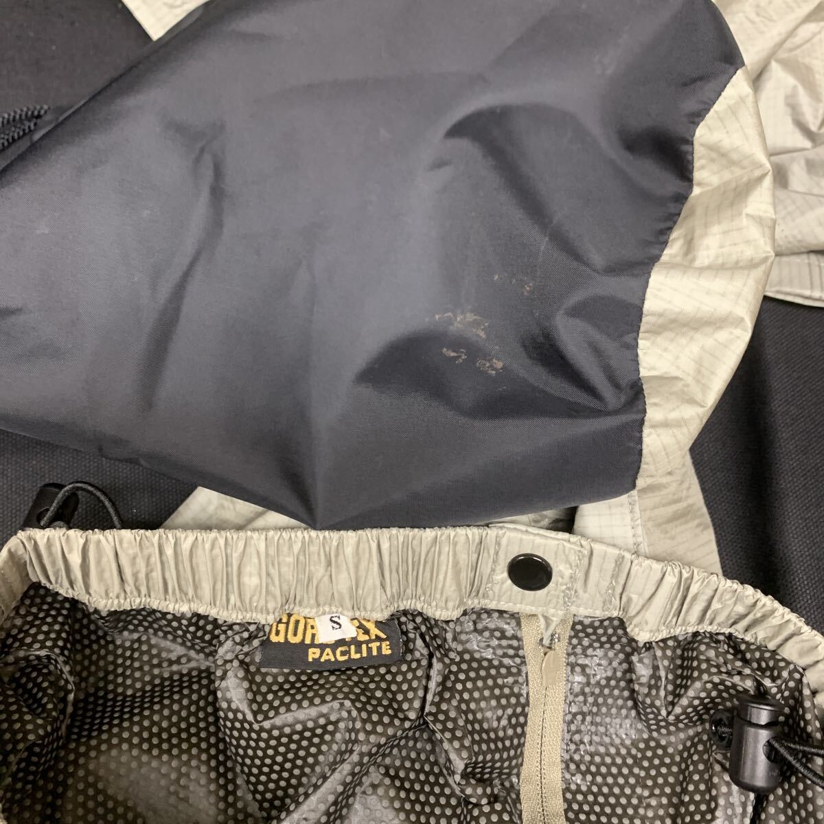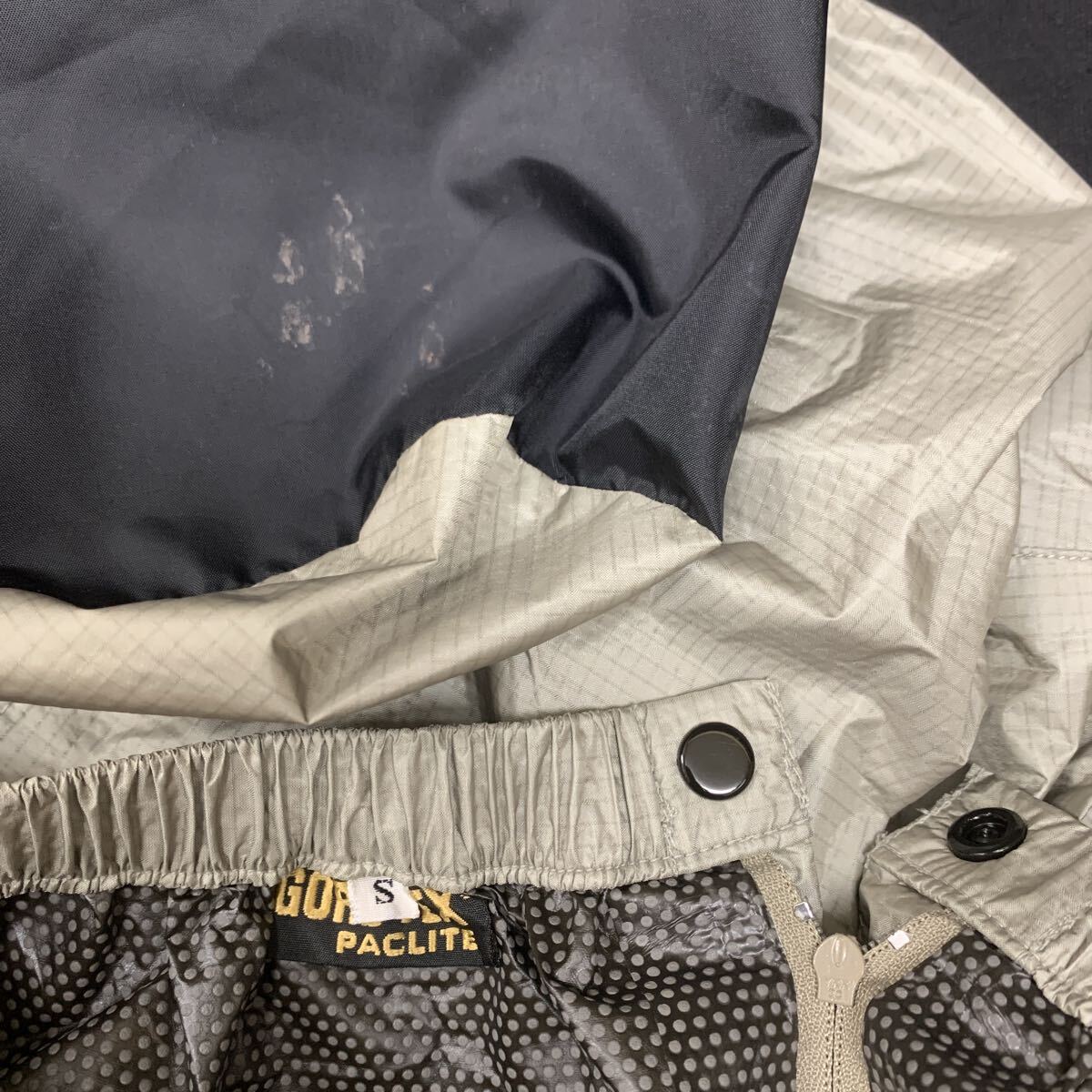 替え用のベージュのGORE-TEXのパンツはブランド名なし、スタッフバッグに汚れがございます(画像10)が、パンツの状態は良いです。