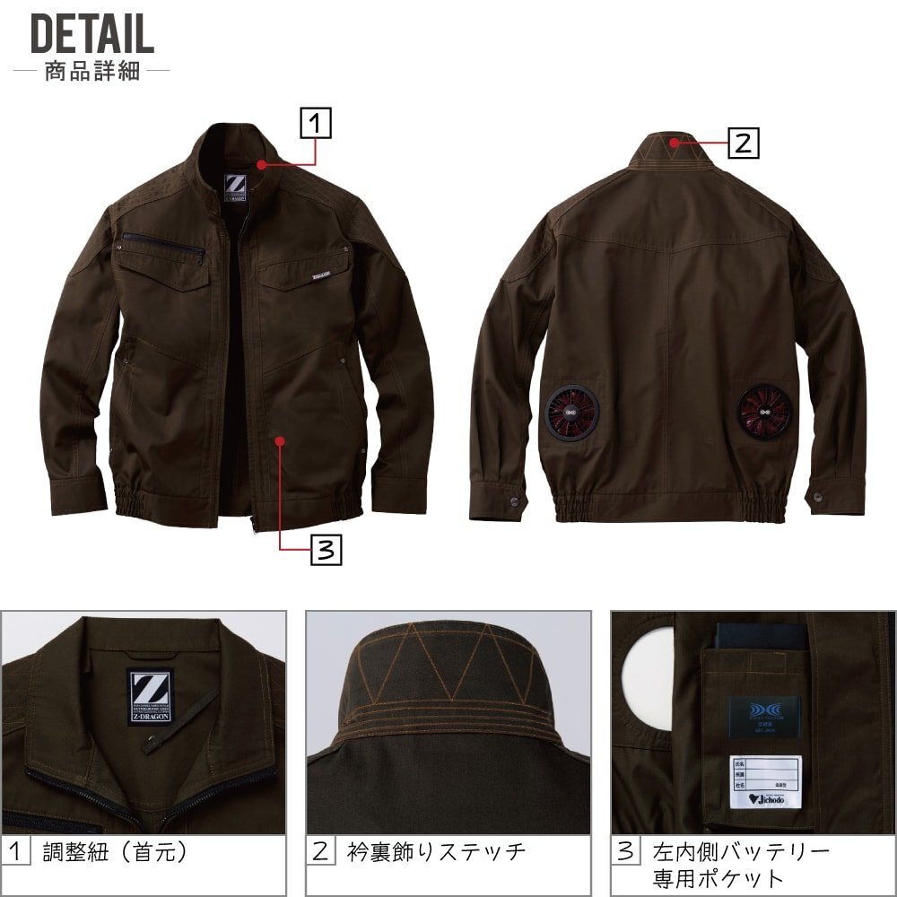 | 注意事項 | ※本商品はお支払確定後、約3~4日後出荷となりますのでご了承下さい。 ※本商品は服単品となります。 バッテリー・ファンは付属しておりません。 ※炎天下の車内等(高温の場所)に放置しないよう、ご注意ください。 羽が折れる可能性があるため、エアーガンによるファンの清掃は行わないでください。 専用バッテリー以外は使用しないでください。故障や事故の原因になります。 この素材は火気に弱い素材なので、火気を扱う現場では着用しないでください。 ※本商品の性質上、ごく稀にご希望商品が無い場合が御座います。その際は申し訳ございませんがご容赦下さいませ。 | 返品・交換 | ※本商品の性質上、返品・交換不可となりますので予めご了承下さい。(初期不良・弊社不備の場合は、商品到着後一週間以内は返品・交換可能) ※返品・交換詳細はコチラのご利用案内をご覧下さい。 |