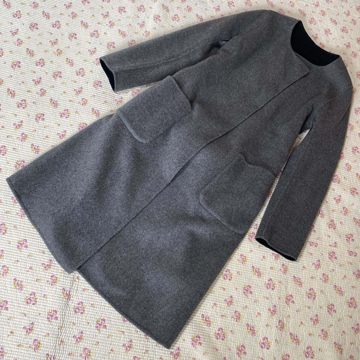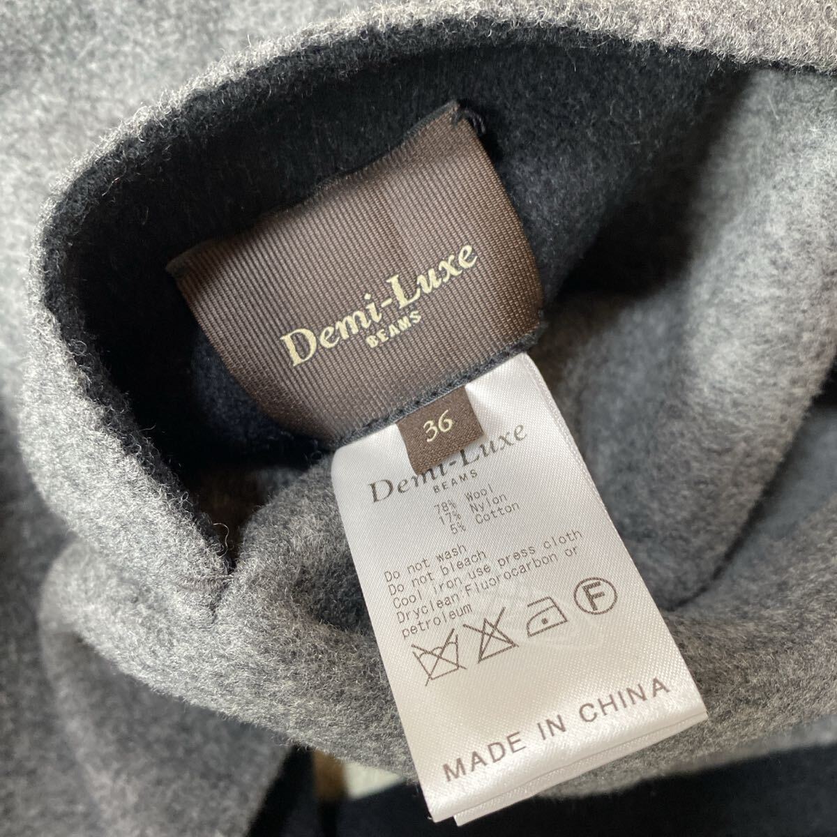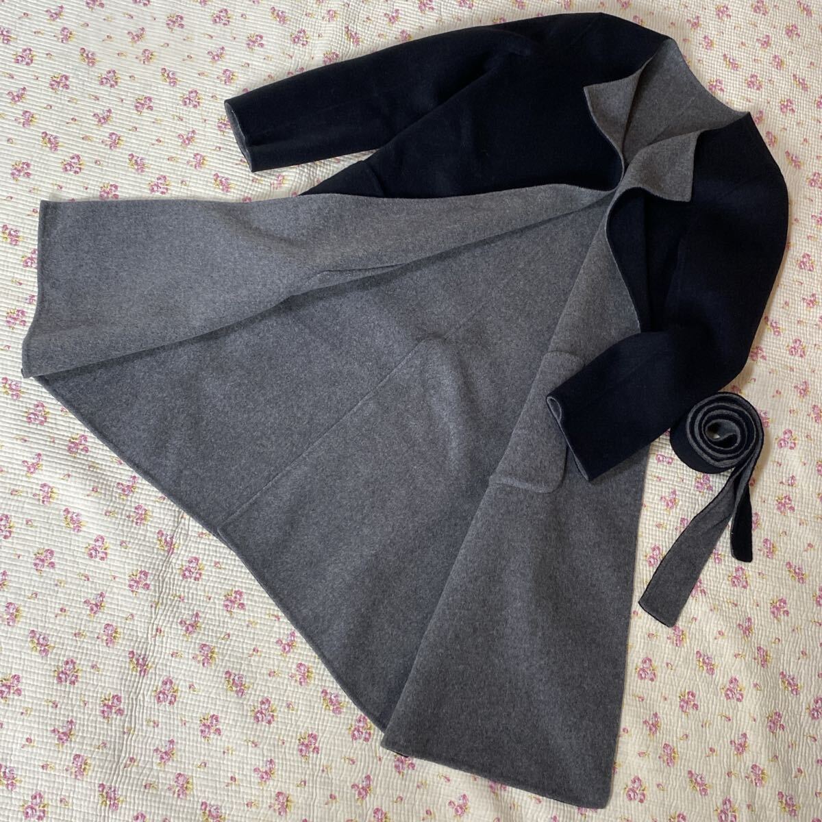 Demi-Luxe BEAMS(デミルクス ビームス)のお品です。大人カジュアルなスタイルに合わせやすいデザインで、シンプルなので様々なコーディネートに活用できます。良質のウール混ガウンコートです。柔らかく、着心地の良いコートです。しっかりとした素材で想像以上に、とても暖かい事もポイント。フロントはボタンやホックが付いていないタイプです。ベルトでとめます。両サイドにポケットがございます。お色は画像でご確認ください。ブラック×グレー系リバーシブル(ダブルフェイス)です。(^^♪ 良質の生地が使われています。