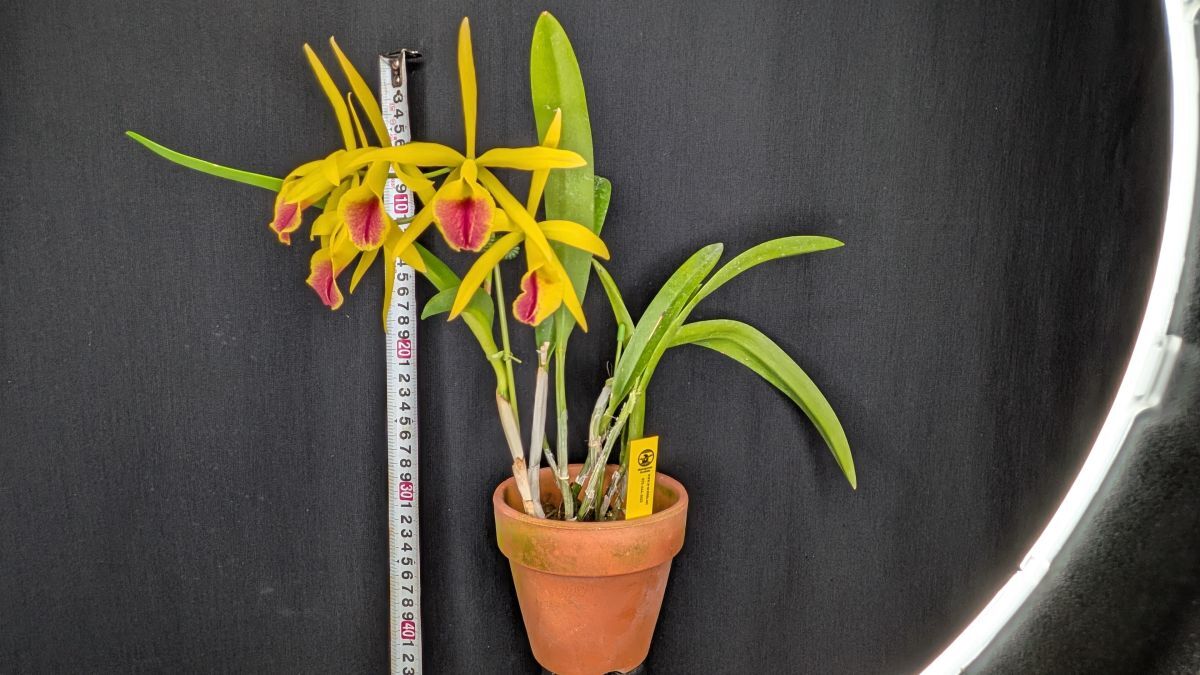 黄色弁赤リップのミニカトレアにブラサボラ原種をかけた交配種です。