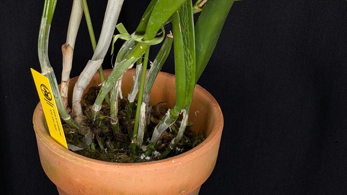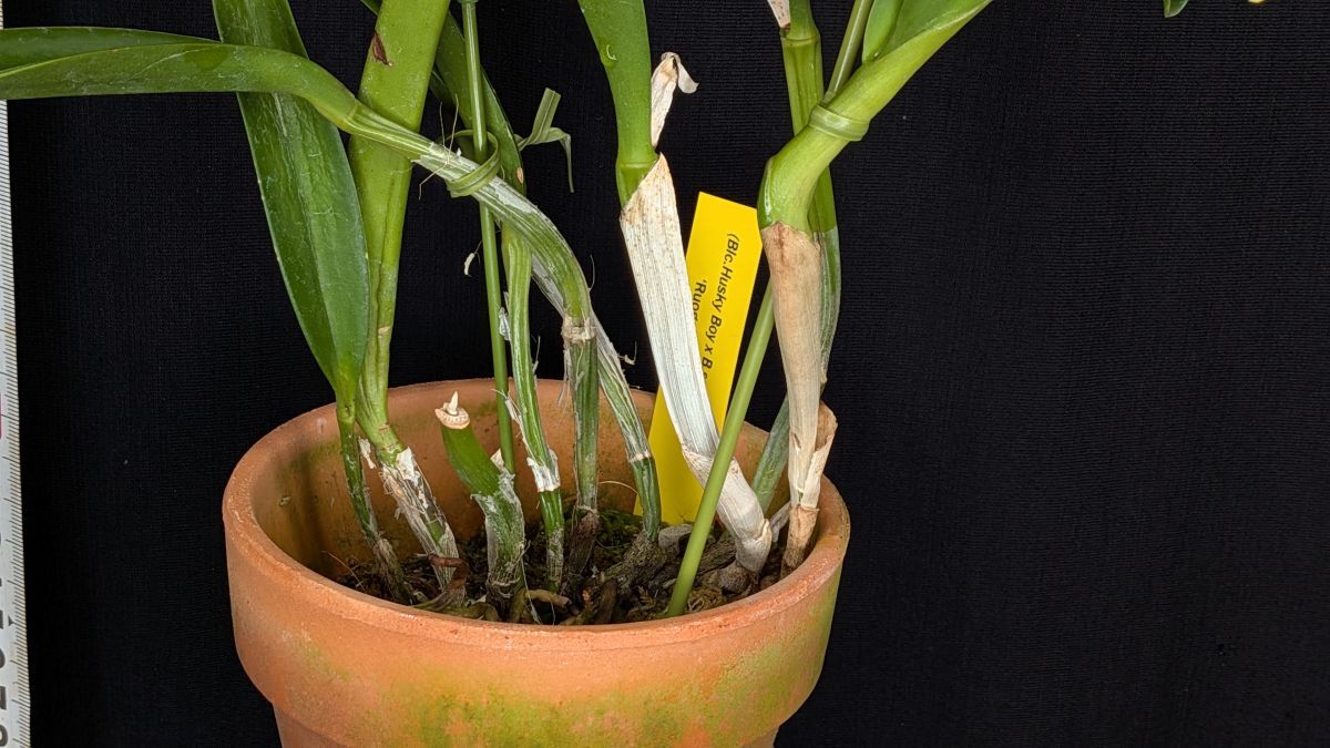 生きた植物ですので、時間の経過によってバックバルブの葉や下葉が落ちるなど多少状態が変わることもございます。