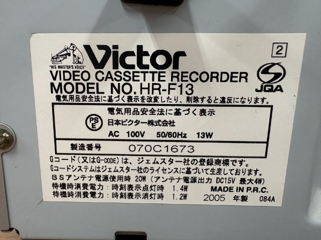 【通電OK】 ビクター ビデオカセットレコーダー BSチューナー内蔵 Victor HR-F13 ビデオデッキ VHS 説明書付き(M10136)