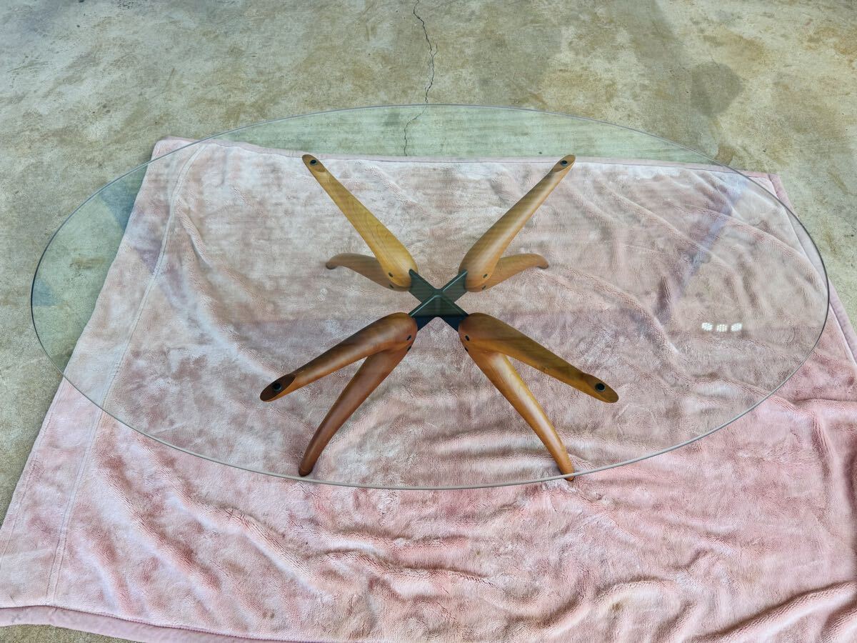 こちらのテーブルは、滑らかに削り出された4本の脚とオーバル型のガラス天板の組み合わせが素敵です。スタイリッシュで圧迫感を感じず、シンプルですのでお手持ちのソファやインテリアにも馴染みやすいかと思います。