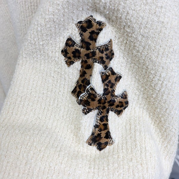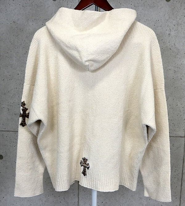 商品名 | CHROME HEARTS 銀座店 クロムハーツ レオパードクロスパッチ プルオーバー パーカーニット メンズ SV925 size:M/L 白 |