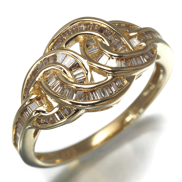 3つのサークルが絡むように美しいゴールドの煌めきを演出したGSTVのデザインリング。共に飾られた上質ブラウンダイヤモンドの眩くスッキリとした鮮やかな輝きがお手元を上品に照らしてくれますよ。 |
