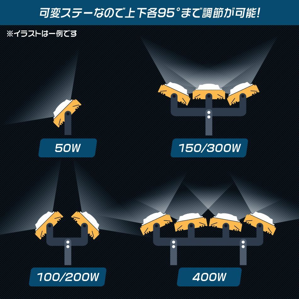 消費電力 : 50W (500W相当) ルーメン : 4000LM 防水レベル : IP65 照射角 : 広角120° 重量(約) : 1.1kg |