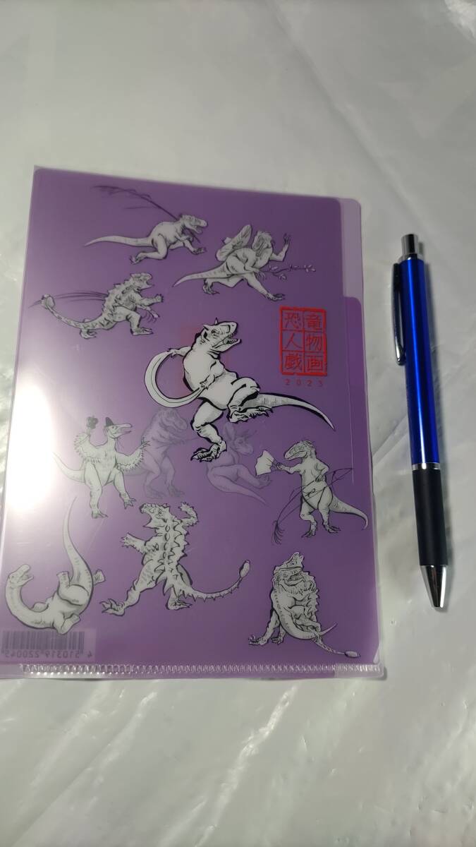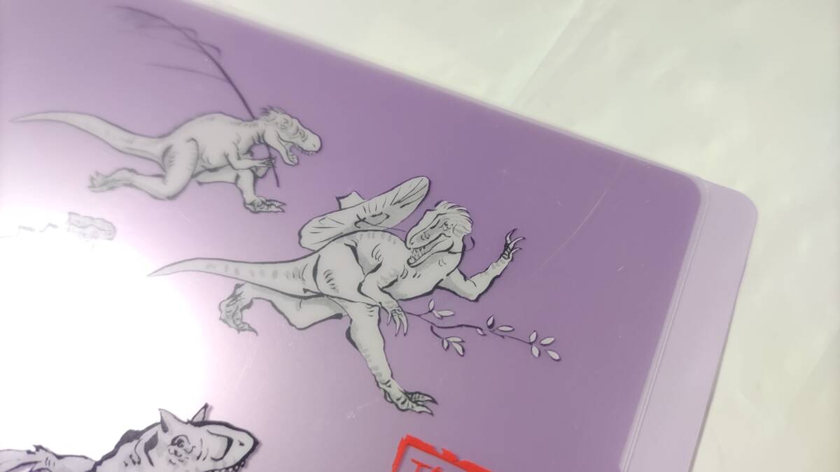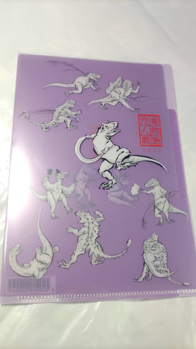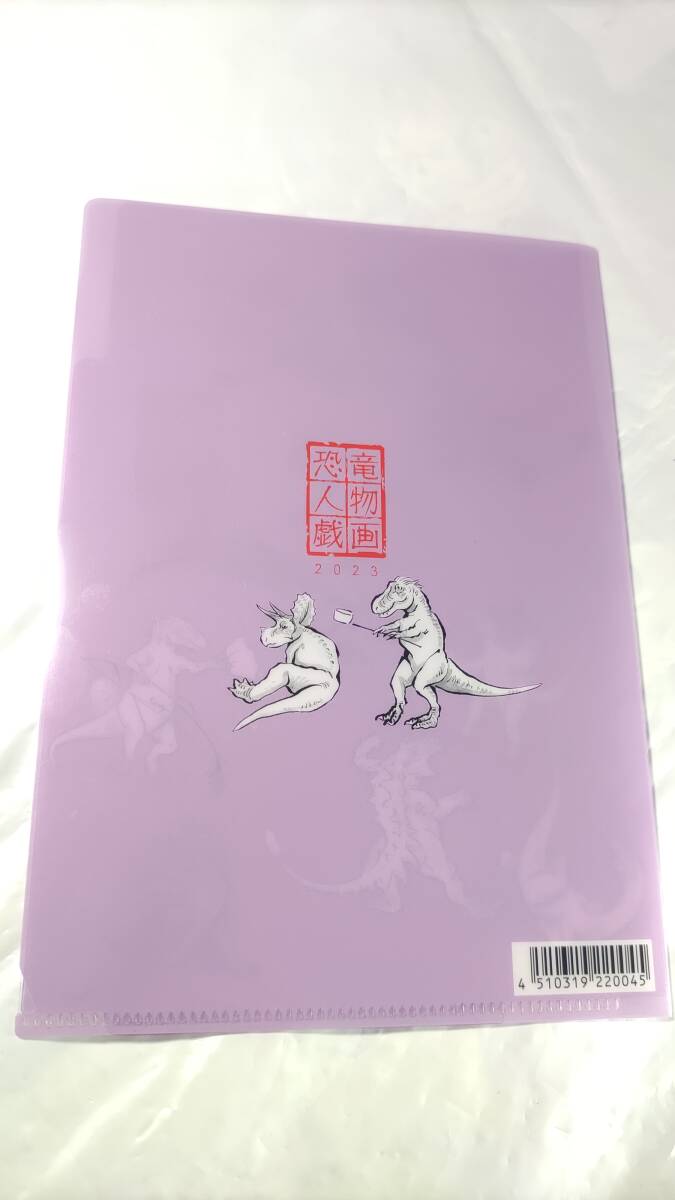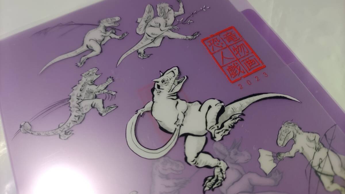 素敵な恐竜人物戯画デザインのミニクリアファイルです。