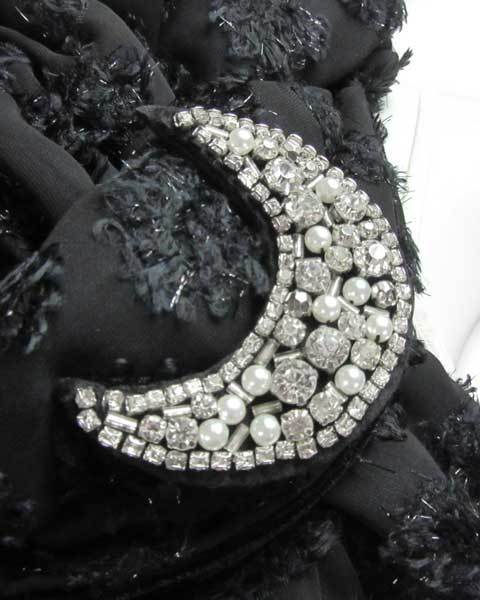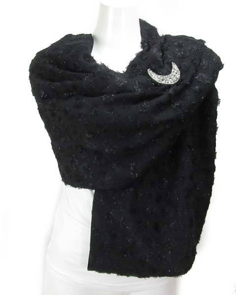 | 上品で華やかなストール。表地と裏地で素材感が違い、高級感があります。シックながらも華やかで、華やかなお席やちょっとしたパーティーシーンなどで活躍してくれます。たっぷりビジュー付のブローチをプラスするとゴージャスになります。 |