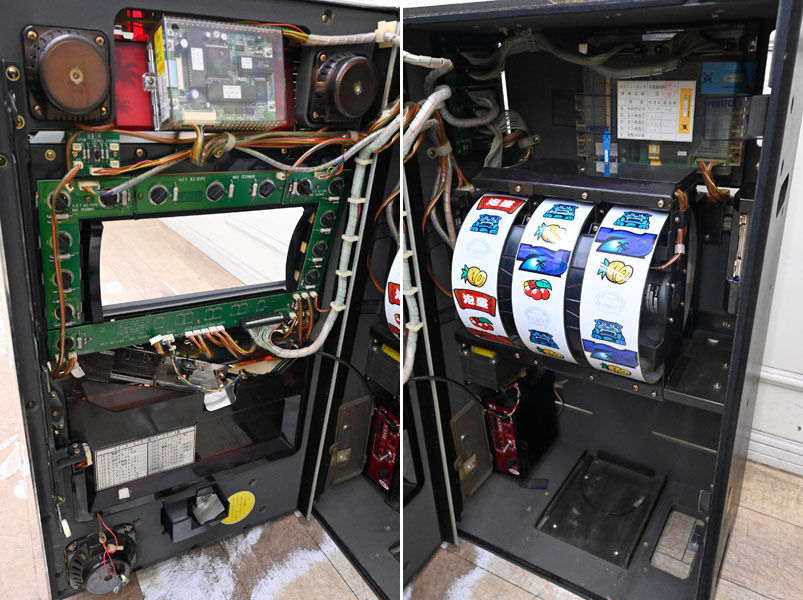----------------------------------------------------------------------------------------- ●送料や注意事項は必ずご確認下さい。落札後にトラブルになるケースが増えております。● ◆コンディションは写真・文章にて記載して有りますが、全てのキズの写真は掲載致しておりません。大きなダメージを除き見落とし、記載漏れが有る事はご了承下さい。 ◆当サイトにて出品する商品は多種多彩で、当方商品知識の無い物も多数ありますので落札後の質問やメンテナンス等にはお答えできません。 ◆入札された時点で、画像、文章をご理解していただいたものと判断させていただきます。不明な点は前もってQ&Aからお願い致します。入札後の質問やお電話等でのキャンセルは一切受け付け致しません。 ◆商品説明に「ノークレーム」と記載しているものに関しては、如何なる状況で届いても保証致しません。詳しくは注意事項の「商品到着後について」の最後に記載しておりますのでご確認下さい。 ---------------------------------------------------------------------------------------- 中古品ですので、キズ、ガリ、汚れ等あります。 数か所電球切れあります。 鍵は設定キーしかありません。ドアキーありませんので、横の穴から開けて下さい。 サイズ 幅48 奥39 高81㎝ 簡単な動作は問題なさそうです。 長時間の検査は致していない事、この手の商品不具合が起きやすい事などを考慮し、こちらのお品は運送事故も含めノークレームノーリターンでの出品となります。 運送保険も入りませんので、業者補償もありません。予めご了承下さい。 落札前の動作確認も可能ですので質問か自己紹介からご連絡いただければ対応させて頂きます。但し事前予約必要です。急な訪問には対応出来ませんのでご注意下さい。 | ||