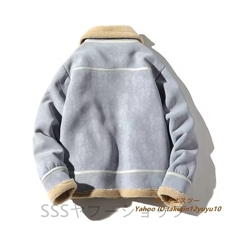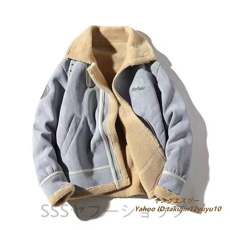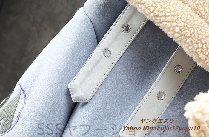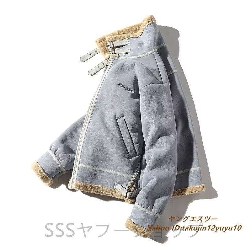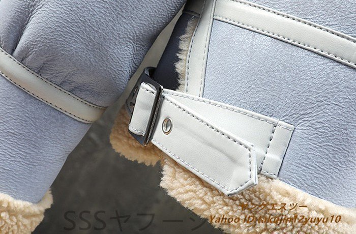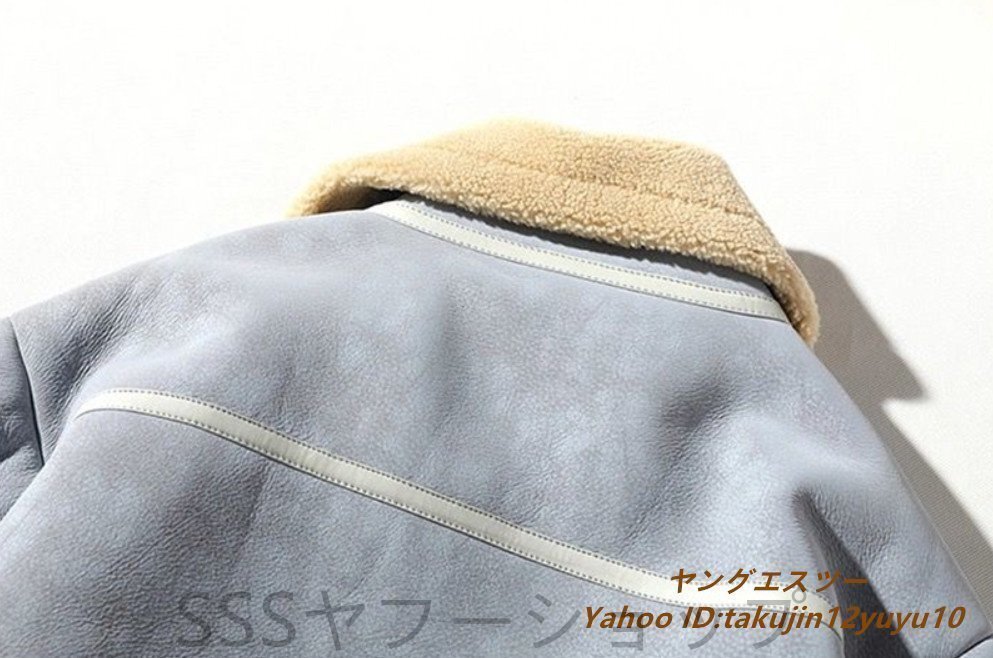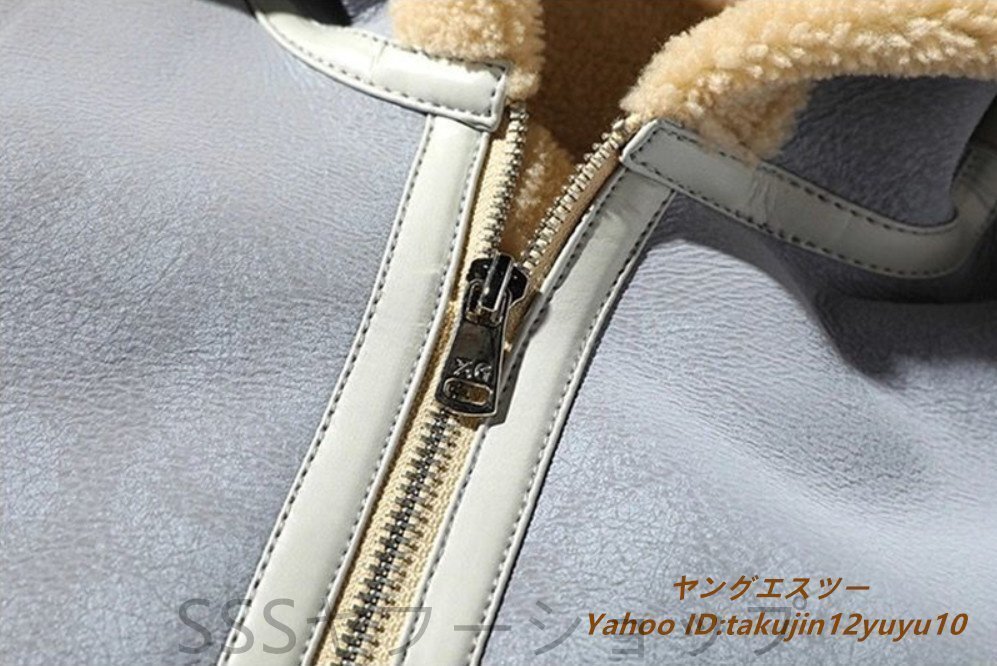 超美品◆定価13万 最高級 ムートンコート ブルゾン 毛皮 ファーコート超希少 フライトジャケット 暖か 厚手 レザージャケット ブルー系 2XL