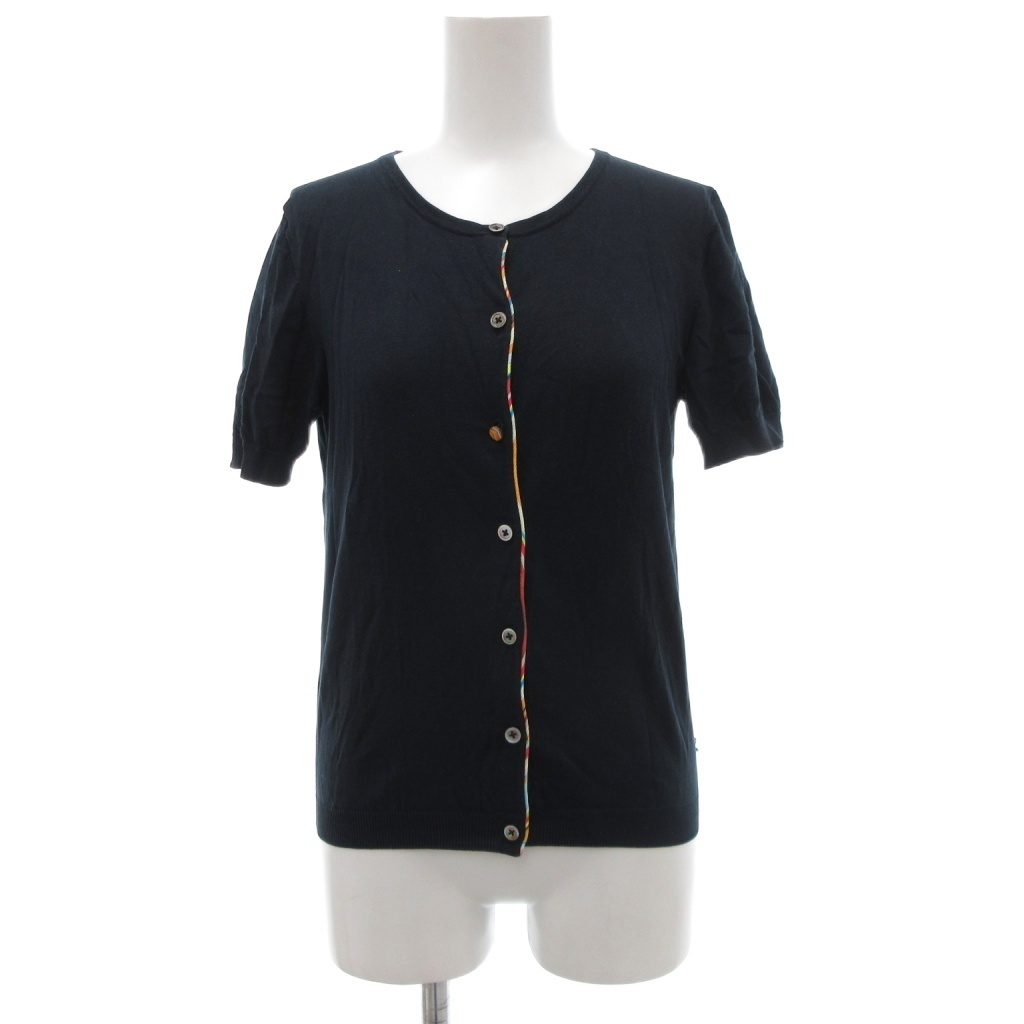 ポールスミス ブラック Paul Smith BLACK カーディガン 半袖 バンドカラー 切替 マルチストライプ M 紺 ネイビー /JS ■YHS2