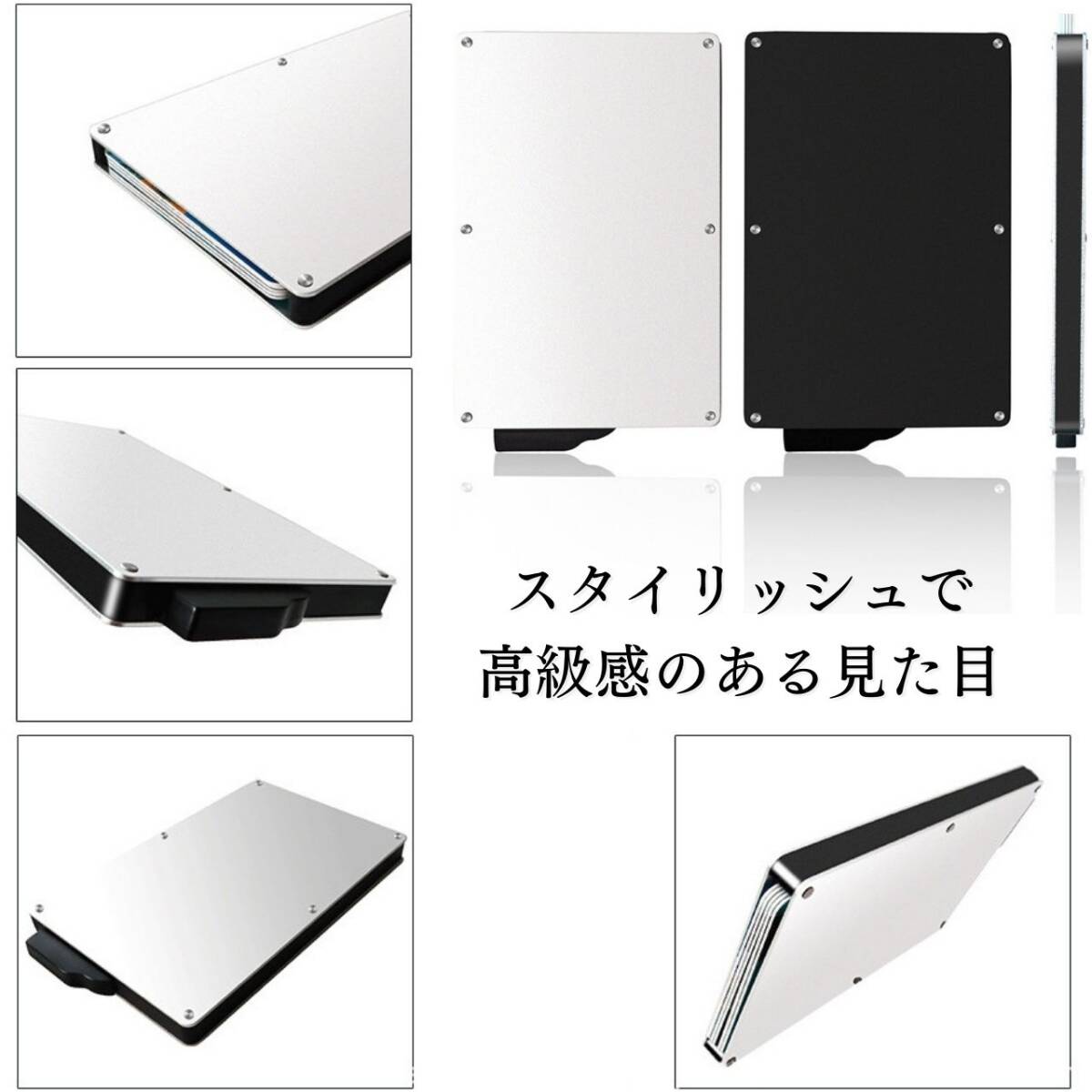 【スキミング防止】コンパクトながらもスキミングからあなたを守るカードケース!ミニマリスト必須アイテム!【アルミニウム合金】アルミニウム合金で耐久性に優れ、軽量で移動中の方に最適なアクセサリー。ミニマリストなデザインで、ポケットやバッグに入れてもかさばりません。【革新的】革新的なスライダーでスムーズなカードの取出し。レバーをスライドするだけで必要なカードがスムーズに出てきます。 コンパクトなデザインで、ポケットやバッグに快適に収納でき、カードを6枚収納できます。【カラー】タイトル、商品画像1枚目をご確認ください。【サイズ】重量:49gサイズ:113mm×8mm×120mm【収納枚数】約6枚【注意事項】・海外製品のため、多少の傷や汚れ等ある場合がございます。・送料の都合上簡易包装での発送となります。コメントなしでの即購入可能です。おまとめ買いでお値引きさせていただきます。お気軽にコメントください。ワンタッチ 軽量 スキミング防止 収納 カードケース カードホルダー スリム スタイリッシュおしゃれ 便利 ブラック シルバー ベージュ 黒 白 銀 茶 磁気防止 名刺入れ メタリックプレゼント ミニウォレット 旅行