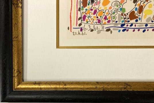 製作年=【  1964年   】/タイトル=【  A LOS TOROS/LE PICADOR   】/版元=【   MOURLOT   】/イメージサイズ=【  210X170  】/新品オーダー高級金箔額装(虫食い装飾ブラック)サイズ=【  380X340/面金マット仕様  】/状態=大変良好【  ミントコンディション  】/ 送料=無料【  ヤフネコ宅急便  】