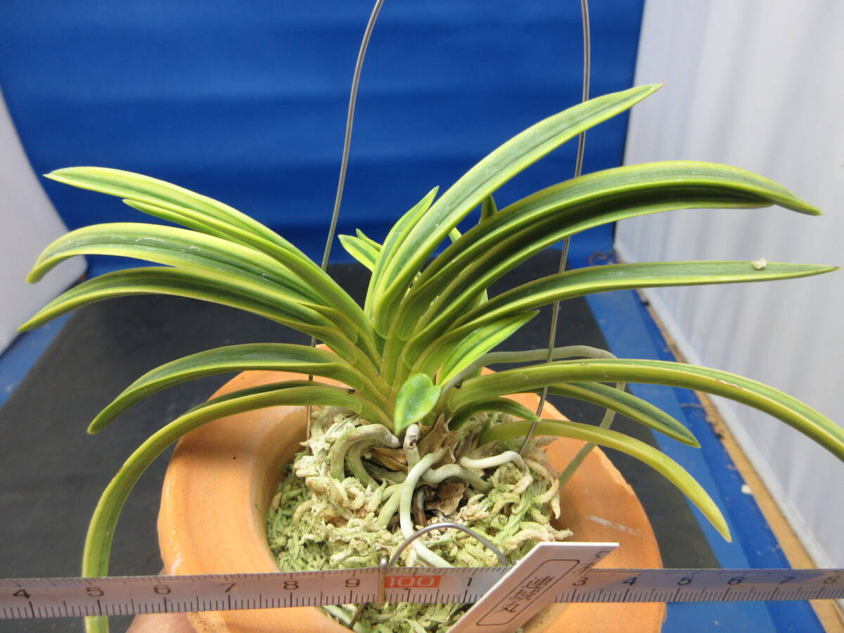 中型で葉幅広い姫葉、やや後晴ぜの白黄覆輪が後樺色に晴ぜる
