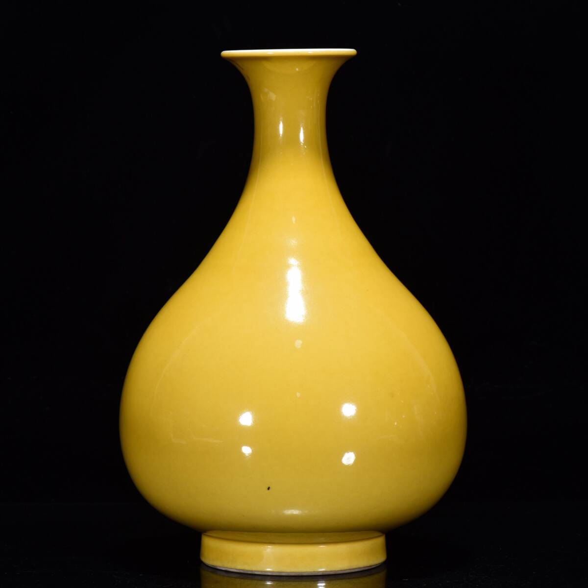 【超珍館蔵】明 宣德年製款 古陶瓷品 黄釉 玉壺春瓶 陶藝 古賞物 古董品 古美術品 時代物 旧家蔵出 稀少珍蔵品
