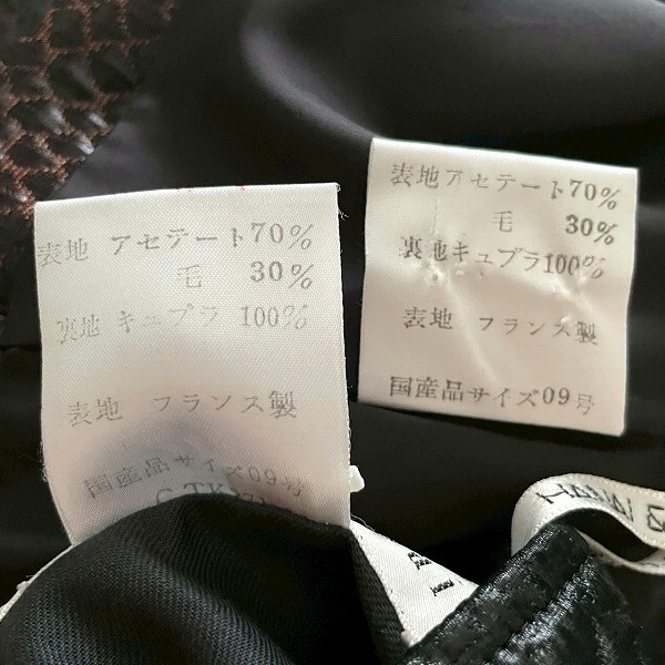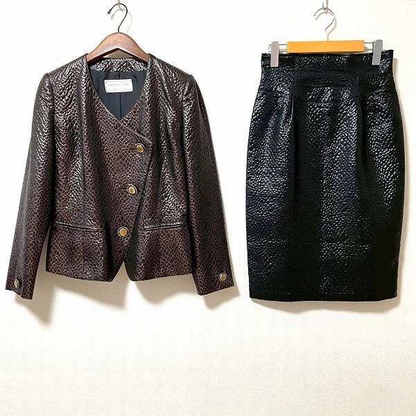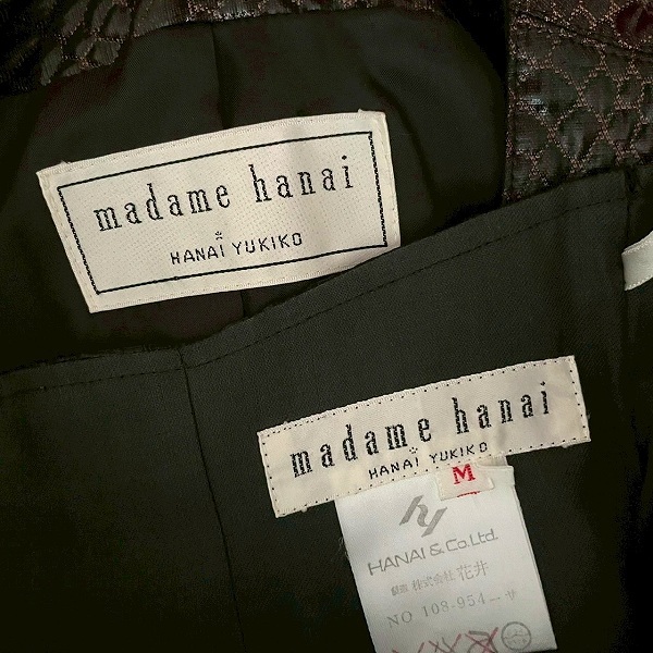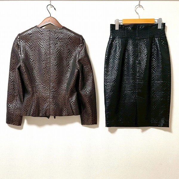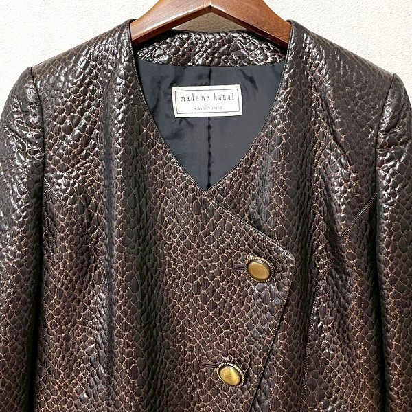 #anc マダムハナイ ユキコハナイ セットアップ ツーピース こげ茶 黒 クロコ柄 フランス製 光沢 ノーカラー 美品 レディース [946246