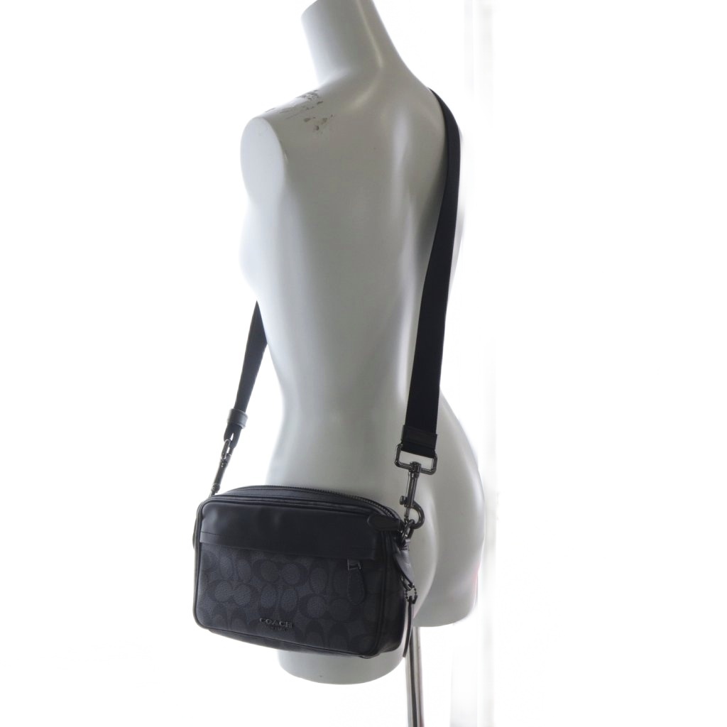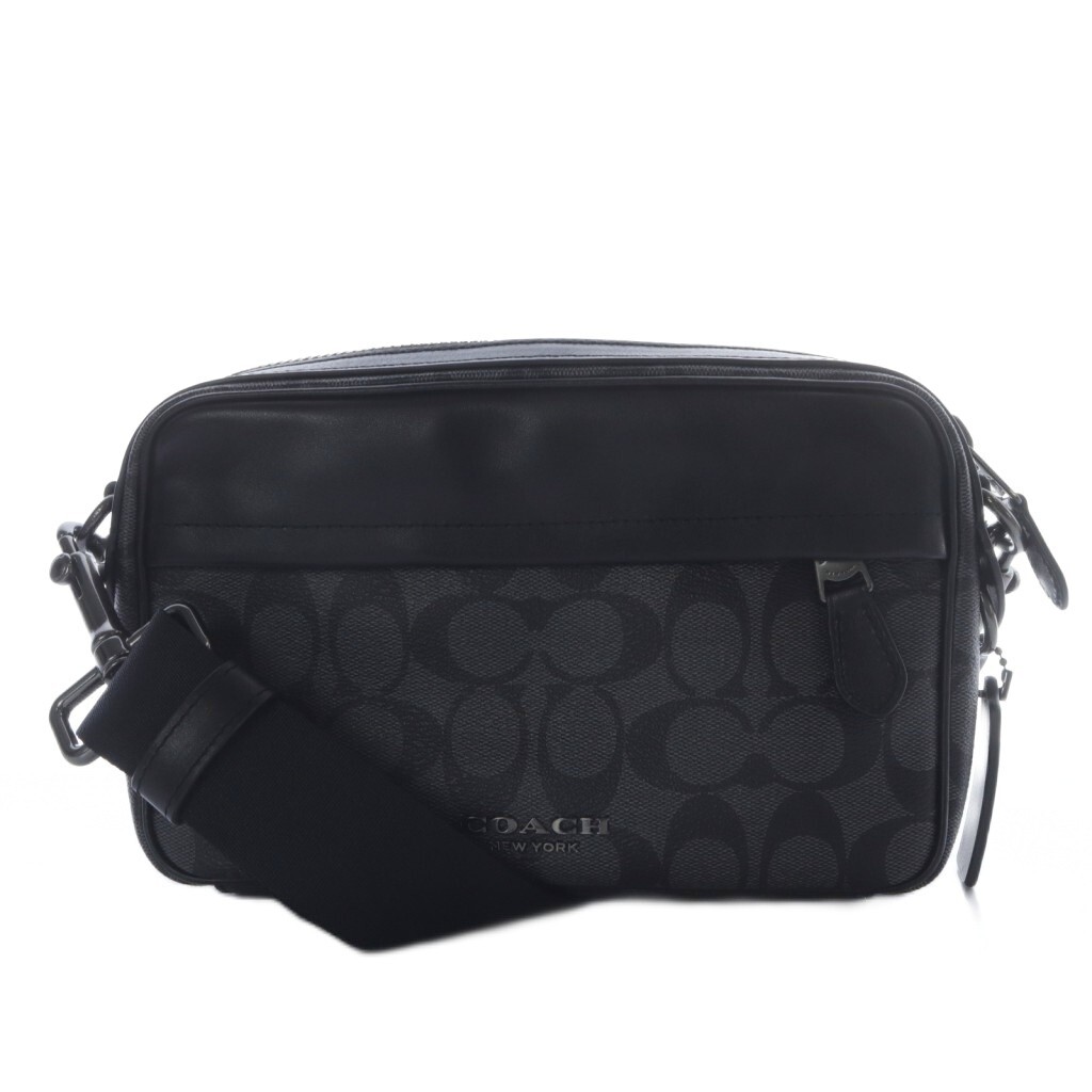 コーチ COACH ショルダーバッグ シグネチャー グラハム クロスボディ PVC レザー ダークグレー 黒 F50715 /YO16 メンズ レディース