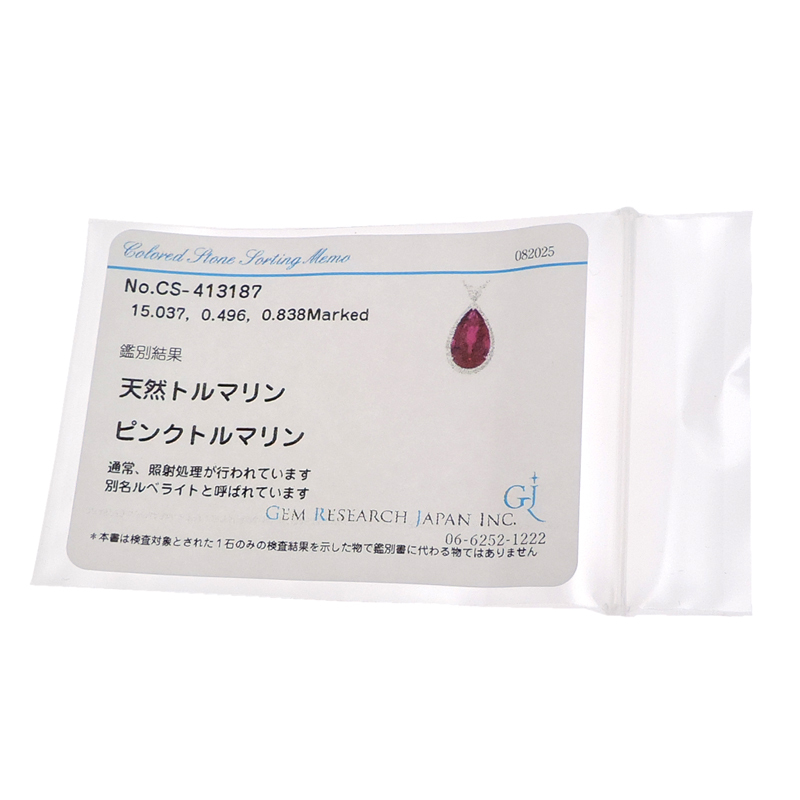 品名 | 15.031ct ピンクトルマリン 0.838ct 0.496ct ダイヤモンド ネックレス 750ホワイトゴールド ピンク系 |