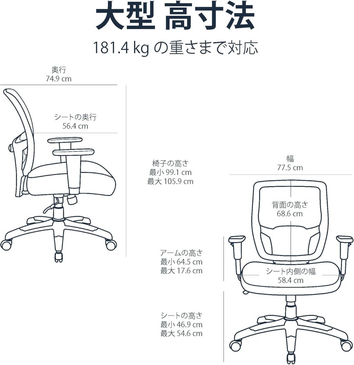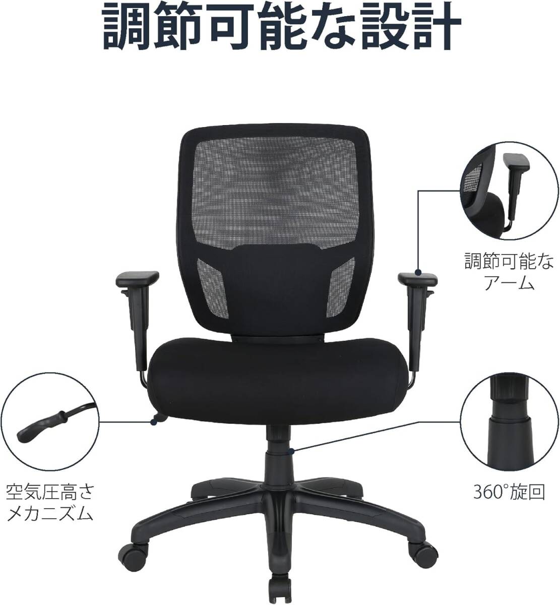 良い物が手頃なお値段 ベーシック デスクチェア メッシュ ワイド座面 肉厚クッション バックサポート付 高耐荷重181kg