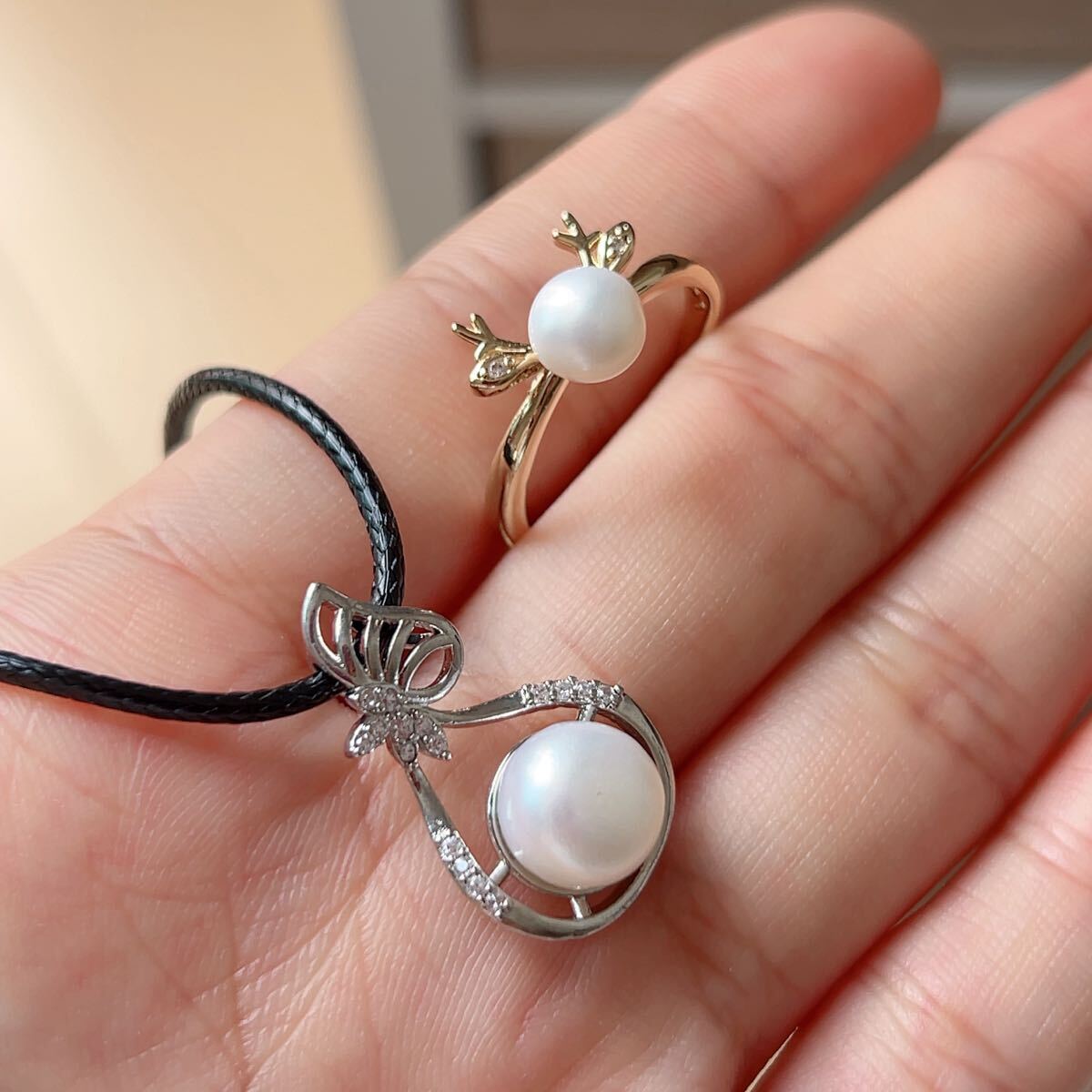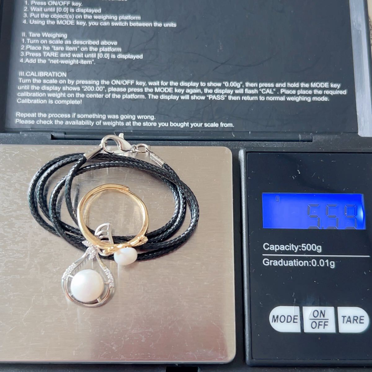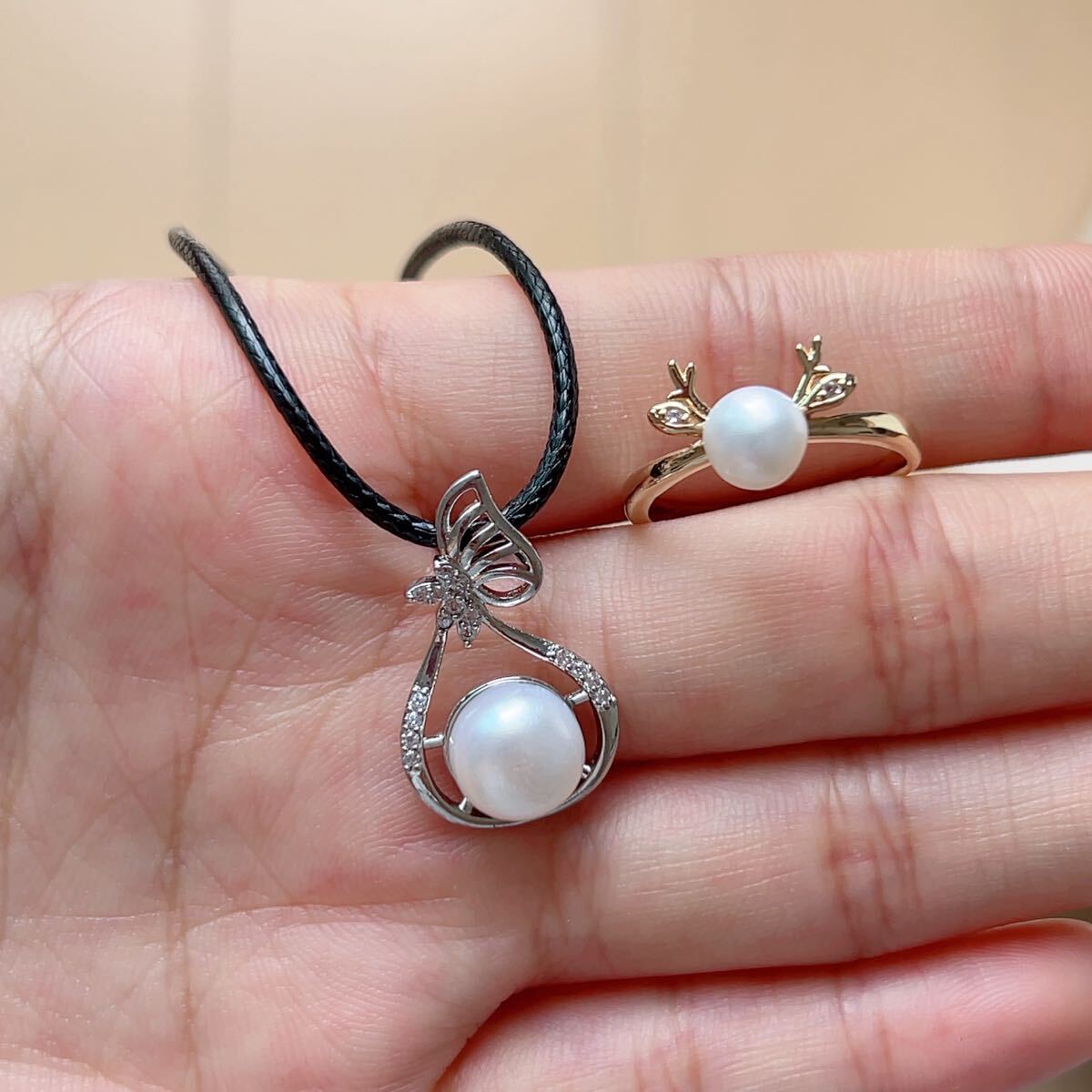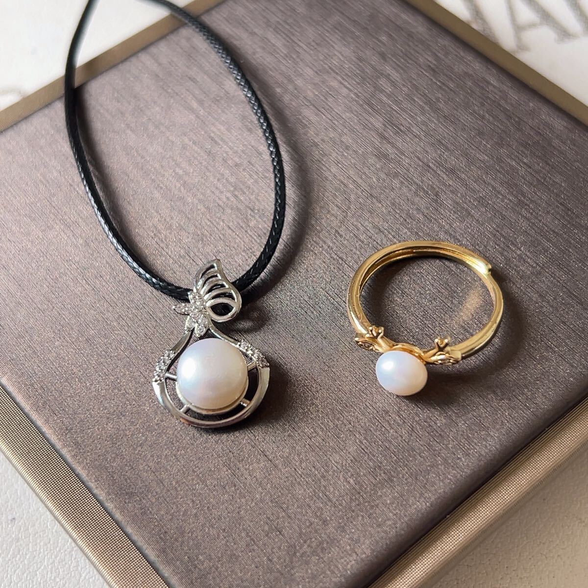 ◇淡水真珠(パール)◇ネックレスペンダント+リング セット◇巾着袋付き◇プレゼントにも020S91204