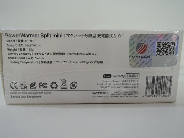 | MATECH マテック マグネット分離型 充電式カイロ PowerWarmer Split mini UT3055 ピンクブルー 日本製/未開封品 | ||||