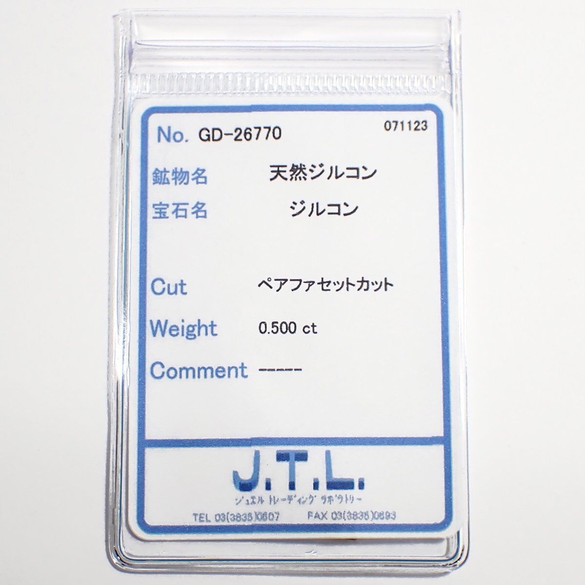 商品状態【やや傷や汚れあり】の天然ジルコンです。 JTL(ジャパントレーディングラボラトリー)のソーティング付のルースです。 12月の誕生石として知られています。 |