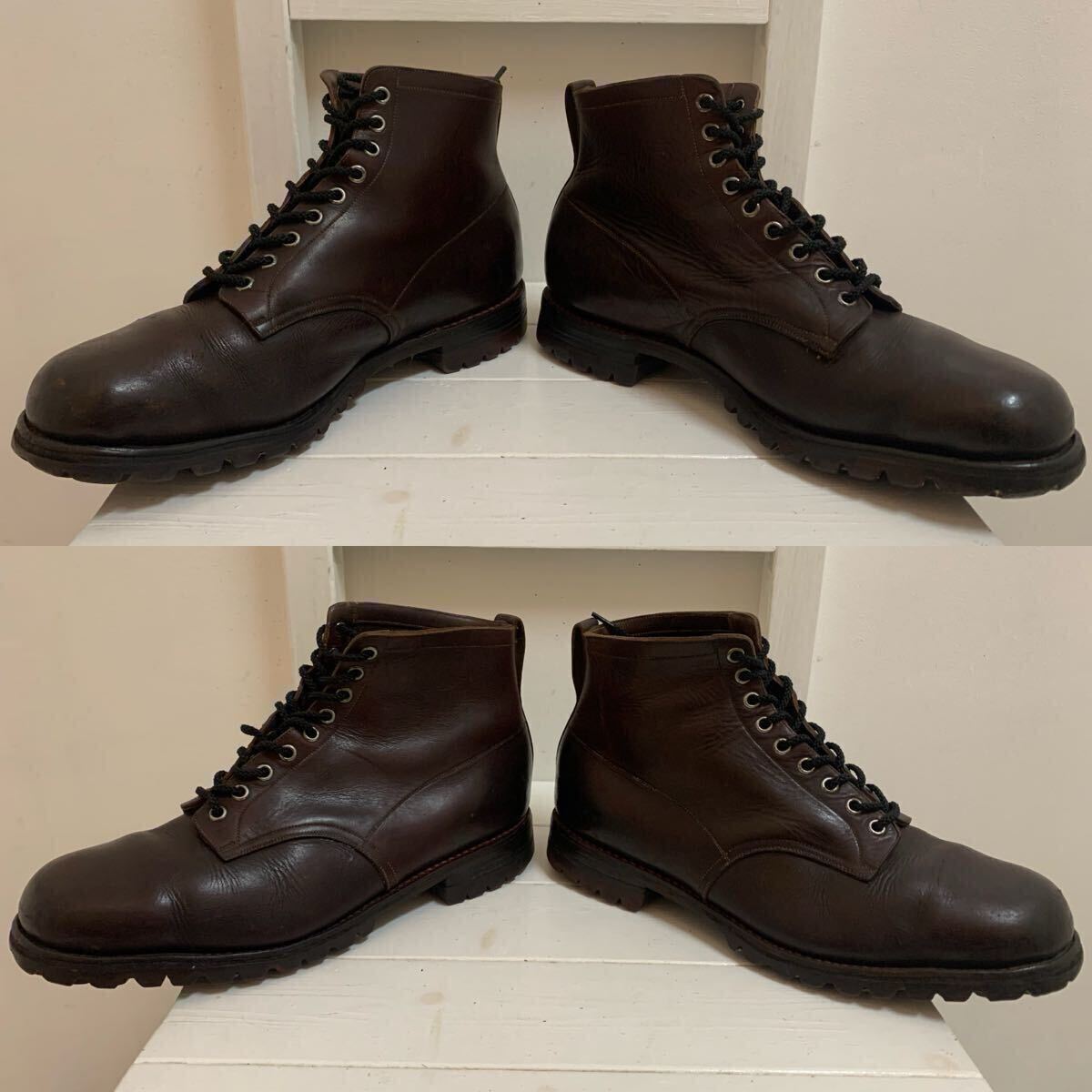 【CONDITION】ヴィンテージ品になりますので、使用感並びに画像のようにアッパーのシワ、所々の擦れや汚れ、色ムラ、またインソールやライニングの擦れや汚れ、インソールにはひび割れや剥がれ、破けなど全体的にダメージが見られ、試着した際にも所々当たる感触がございましたので、ご使用に際して、中敷き敷いてご着用をおすすめ致します。まだまだ問題なくご使用して頂けます。ヴィンテージ品、保管品ですので、その点はご理解の上、ご検討ください。