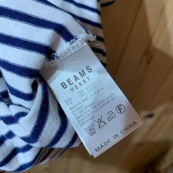 [KWT3585] BEAMS HEART Vネック半袖Tシャツ レディース ネイビーボーダー F ポス