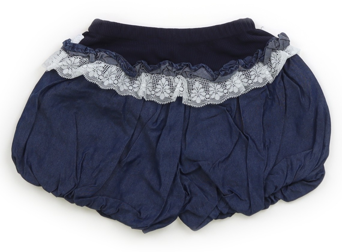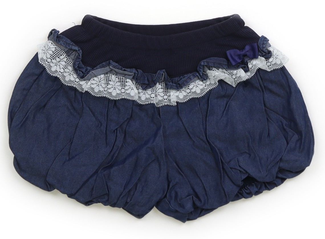ウエストはサイズ調節ゴム付きで、シャツ生地でバルーンデザインになっています。フリルがシワになっていますが、目立つ汚れはなくまだまだお使い頂けそうです。
