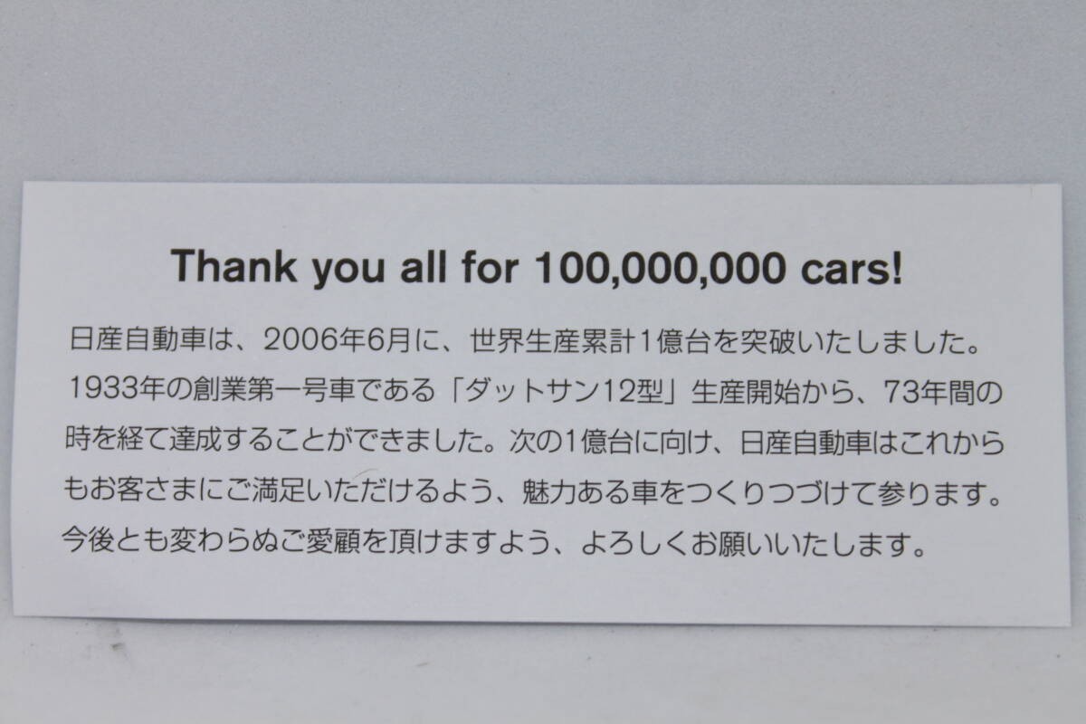 日産自動車が生産1億台突破記念にディーラーで特別に配布された非売品です