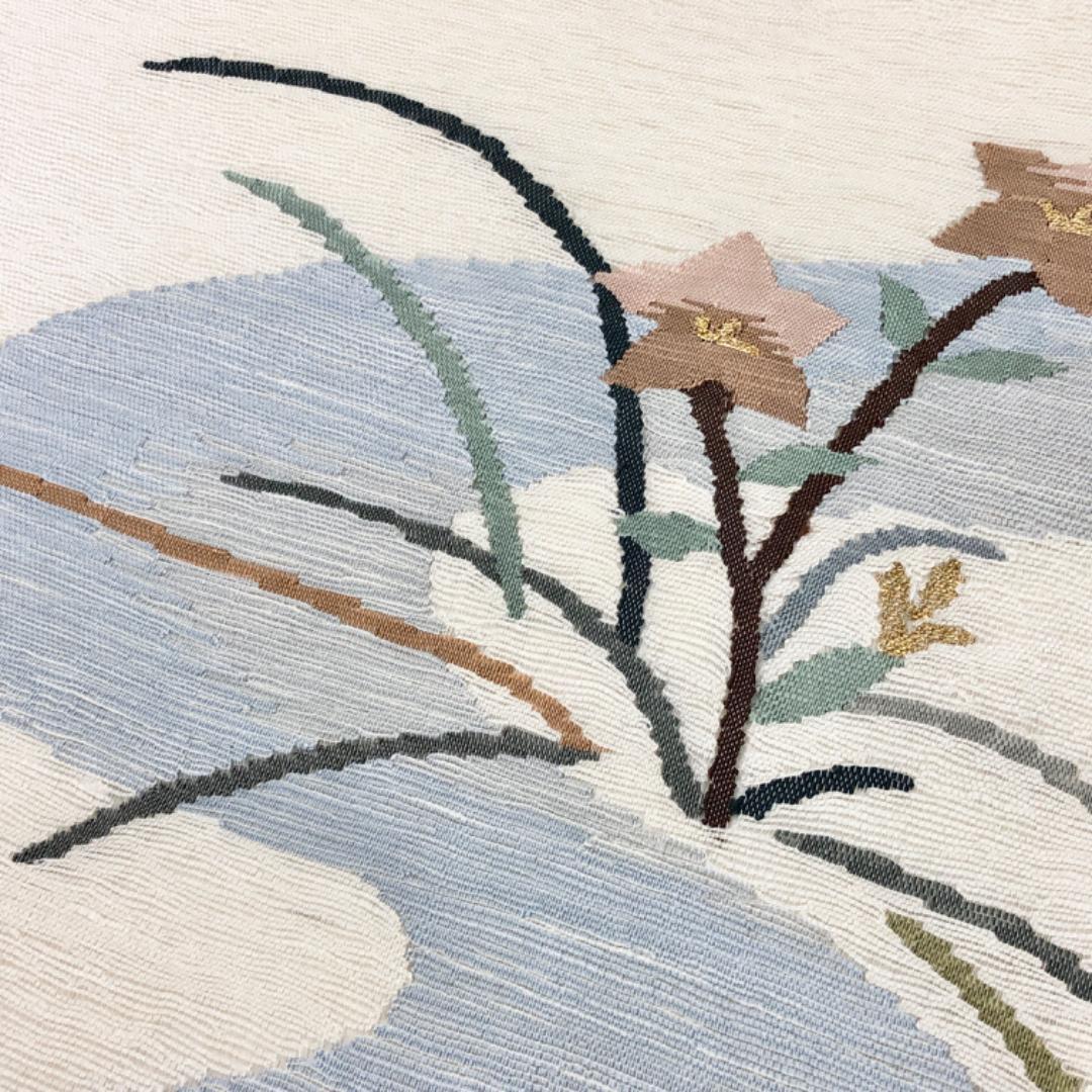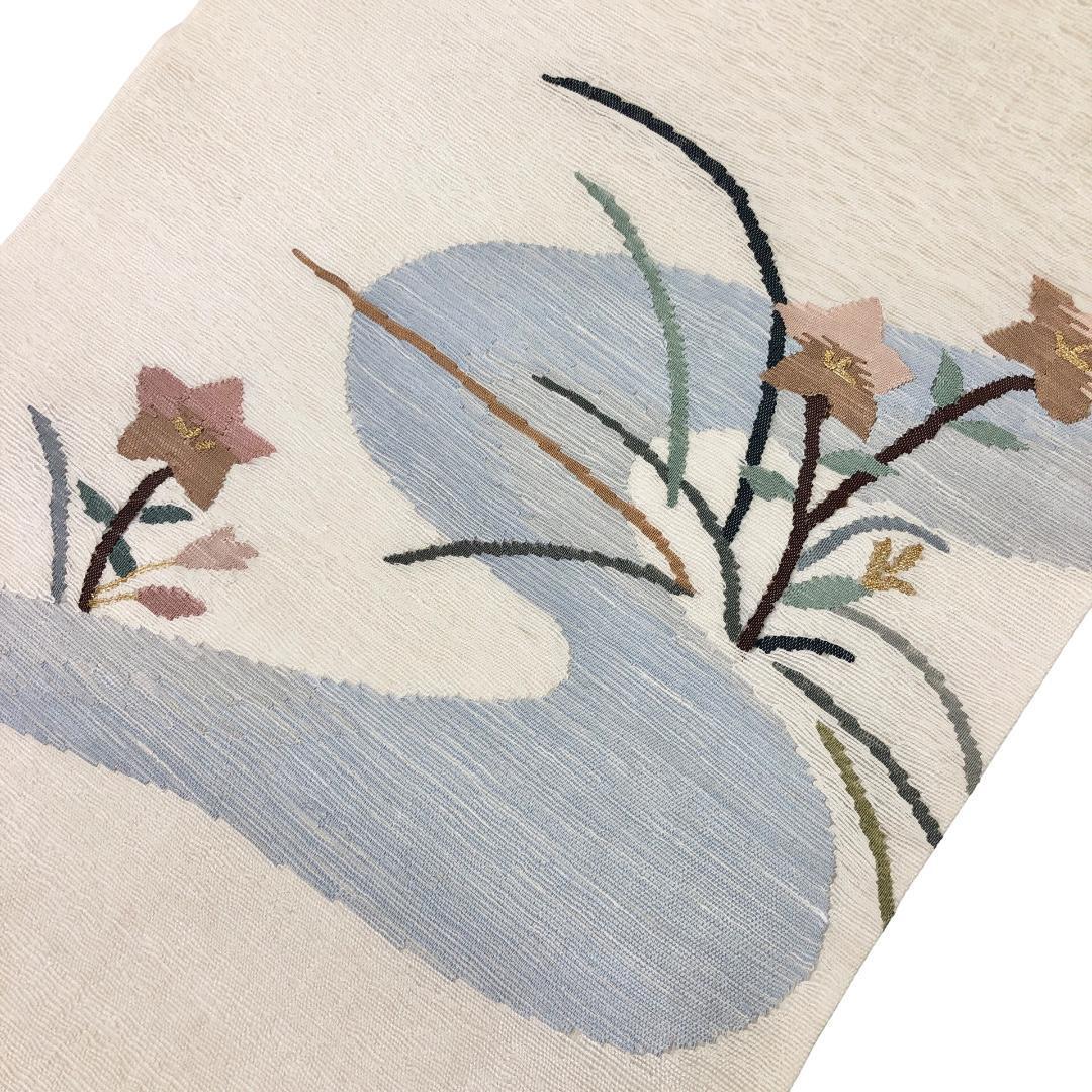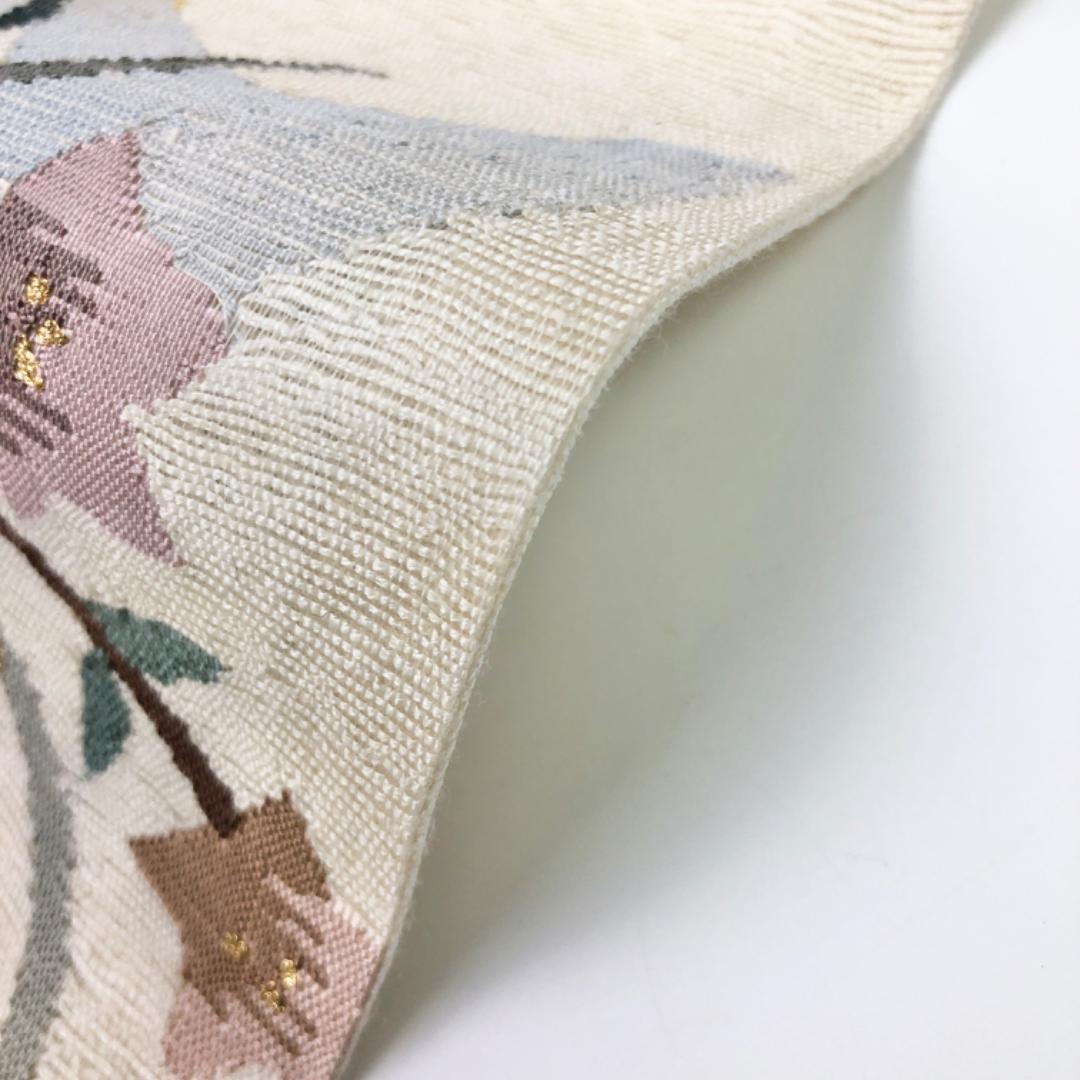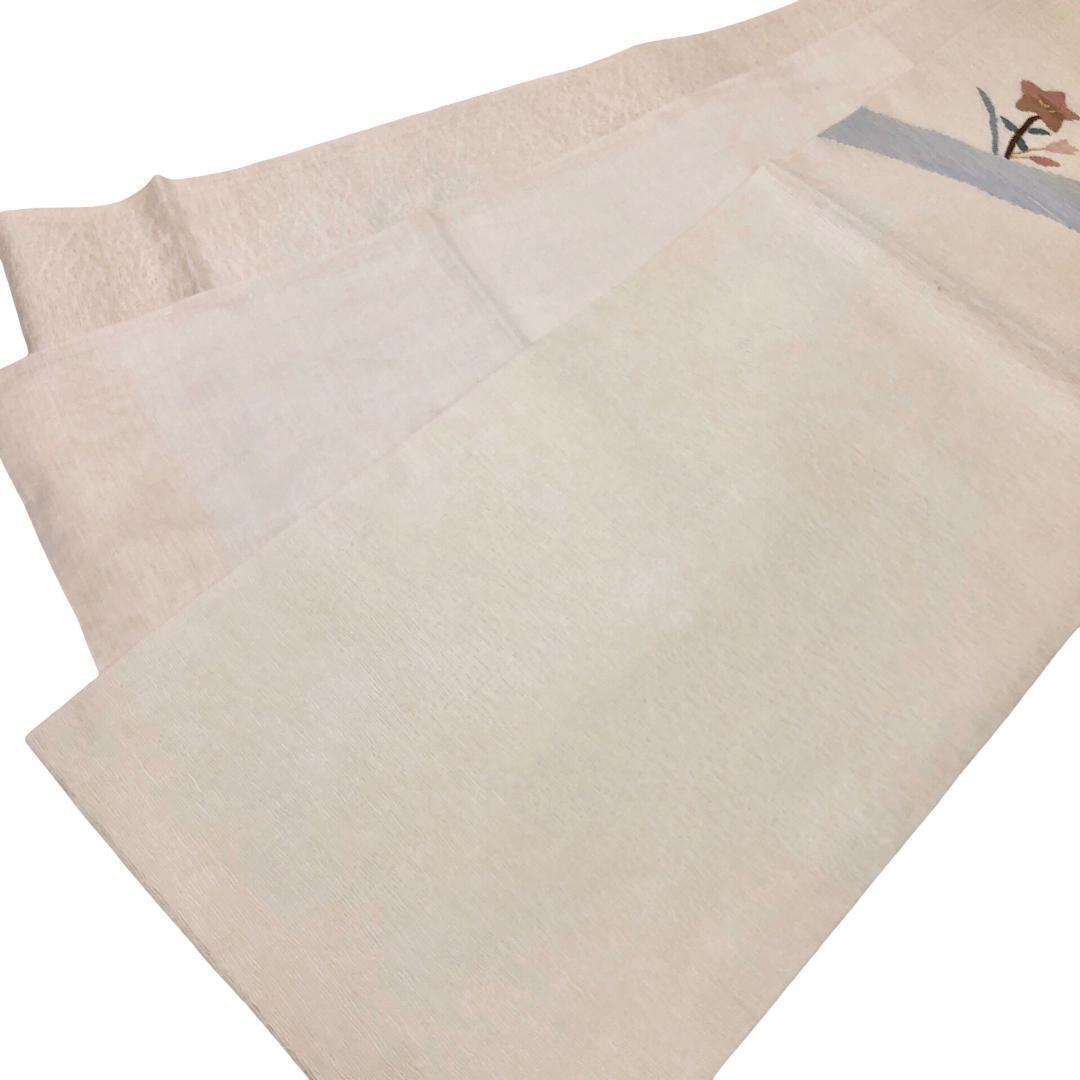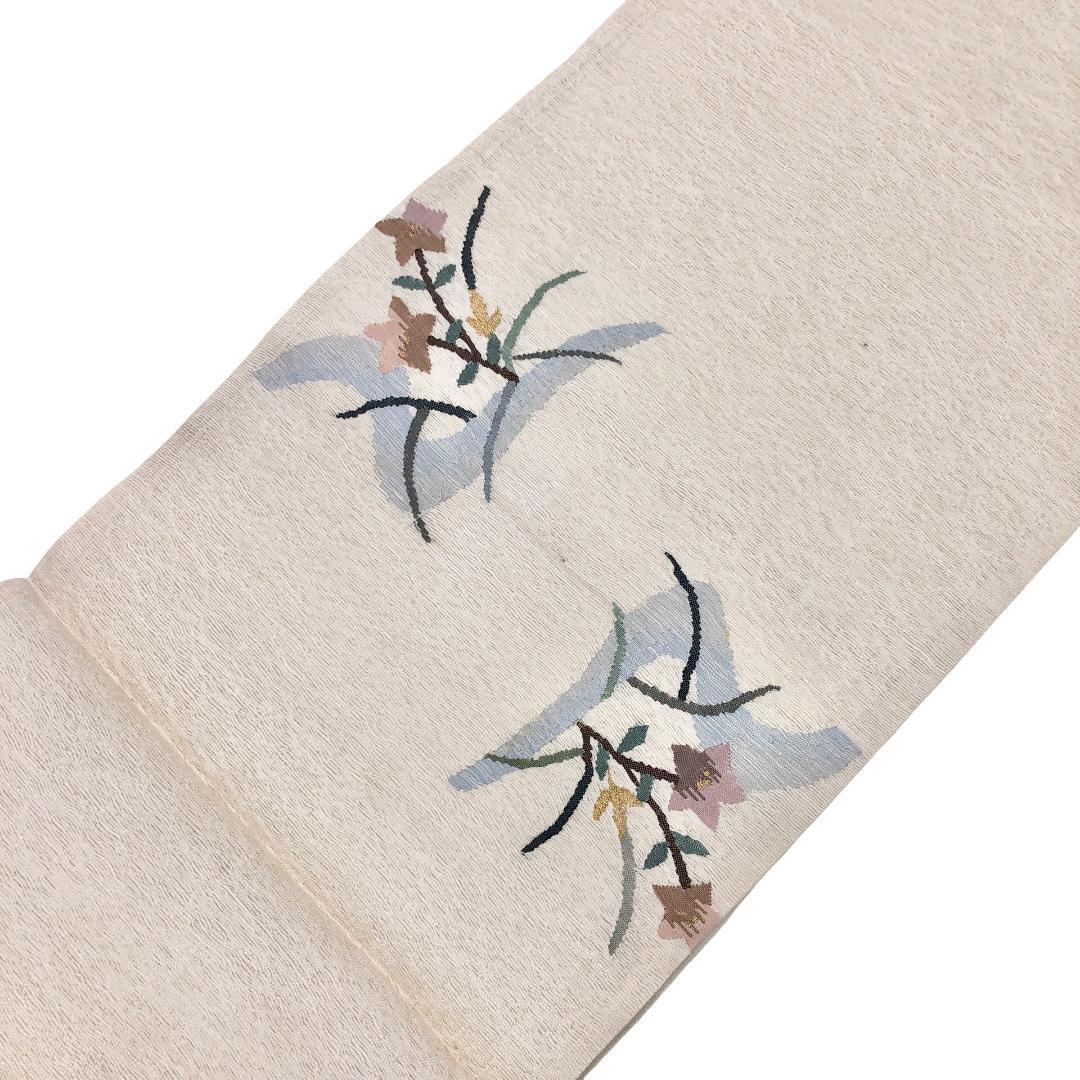 夏帯 京袋帯 夏すくい 流水に花模様 乳白色 金糸 長尺 O-5438 着物 きもの kimono 和服 和装 中古 リサイクル着物 【送料無料】