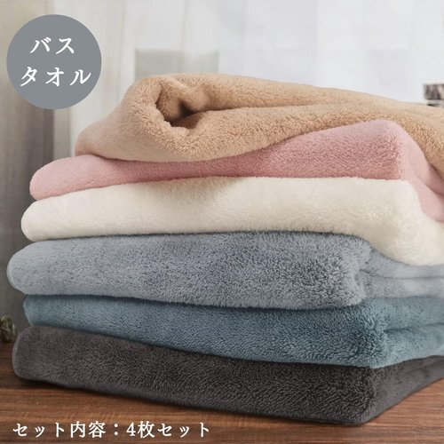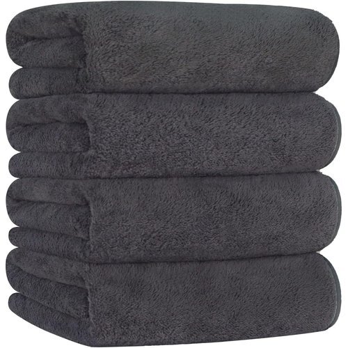 バスタオル マイクロファイバー 4枚セット 大判 60X120cm ふわふわ 瞬間吸水 速乾 通気 耐久性 抗菌 防臭 人気 家庭用 業務用 タオル  ダークグレー  37