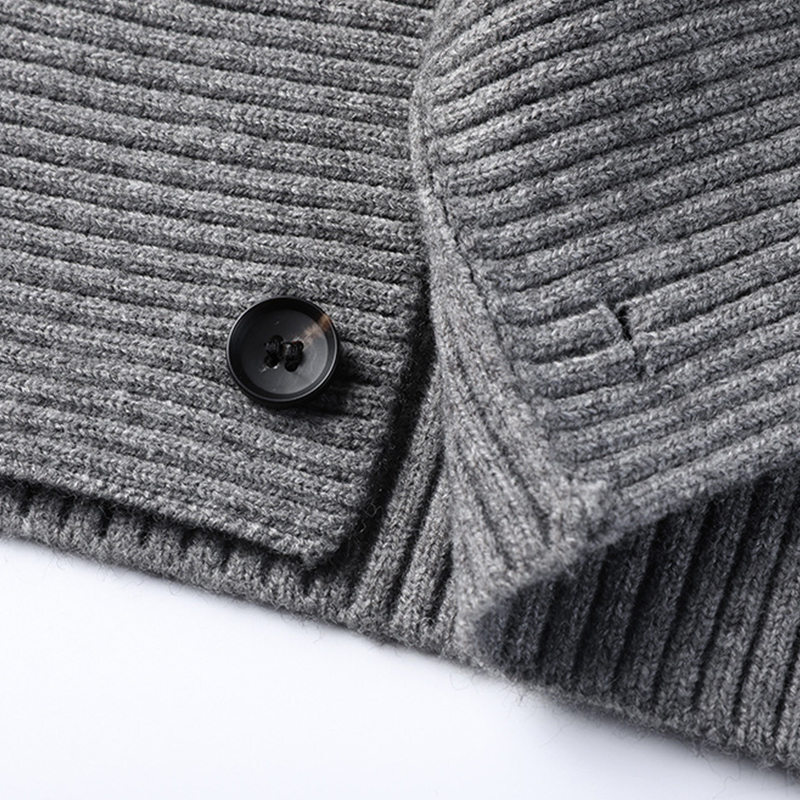 Y6406-M グレー 新品 カーディガン ウール混 ニット セーター ケーブル編み 柔らか 暖かさ 秋冬 厚手 メンズ カジュアル トップス