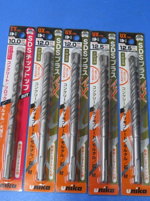 (H)Unika SDSプラスビット 10.0mm×160mm、12.0×160mm、12.5mm×160mm 計5本組 送180 コンクリートドリル ブロック モルタル