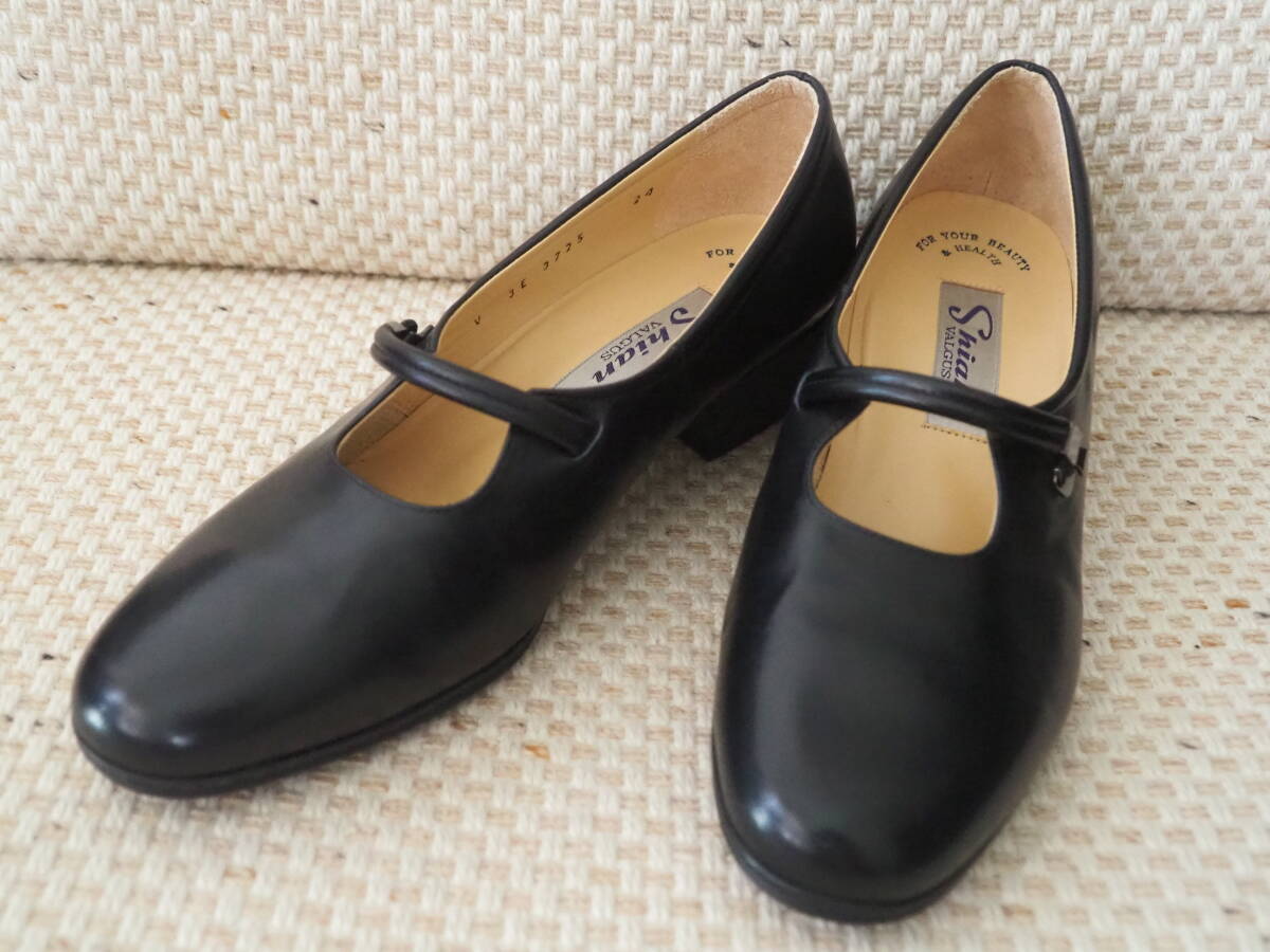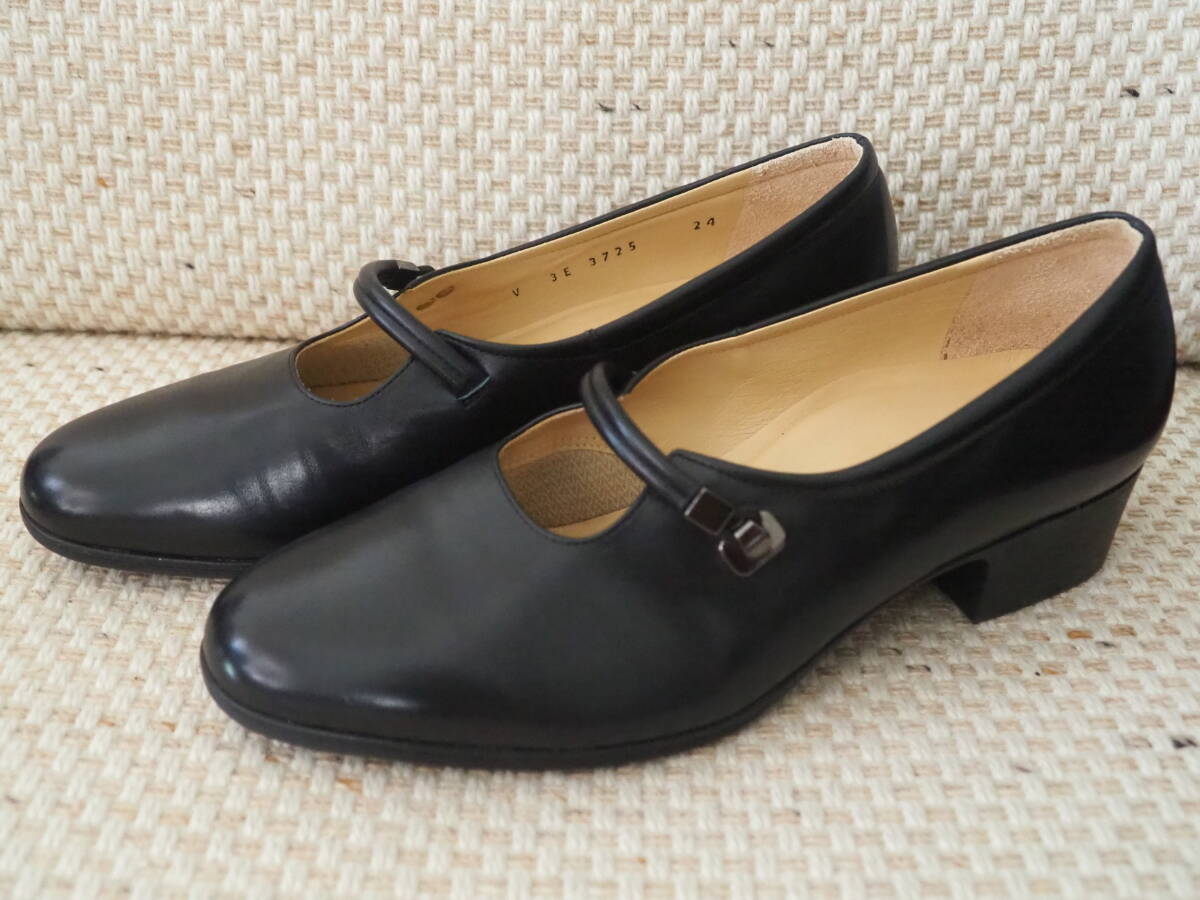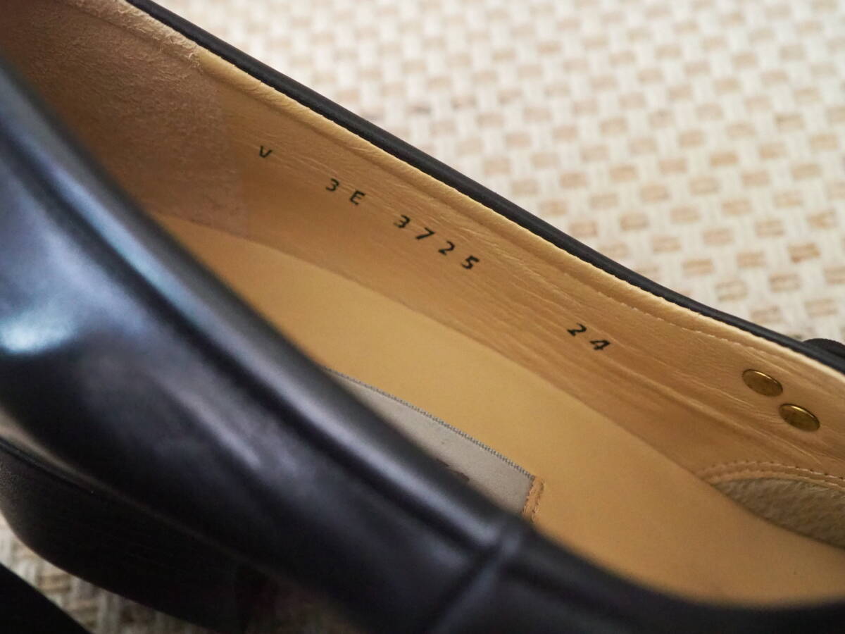★極美品 シアン Shian パンプス ストラップ付 24.0㎝ EEE★ブラック 3E★レザー 本革★