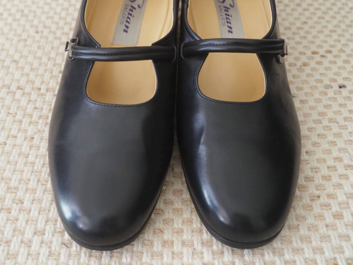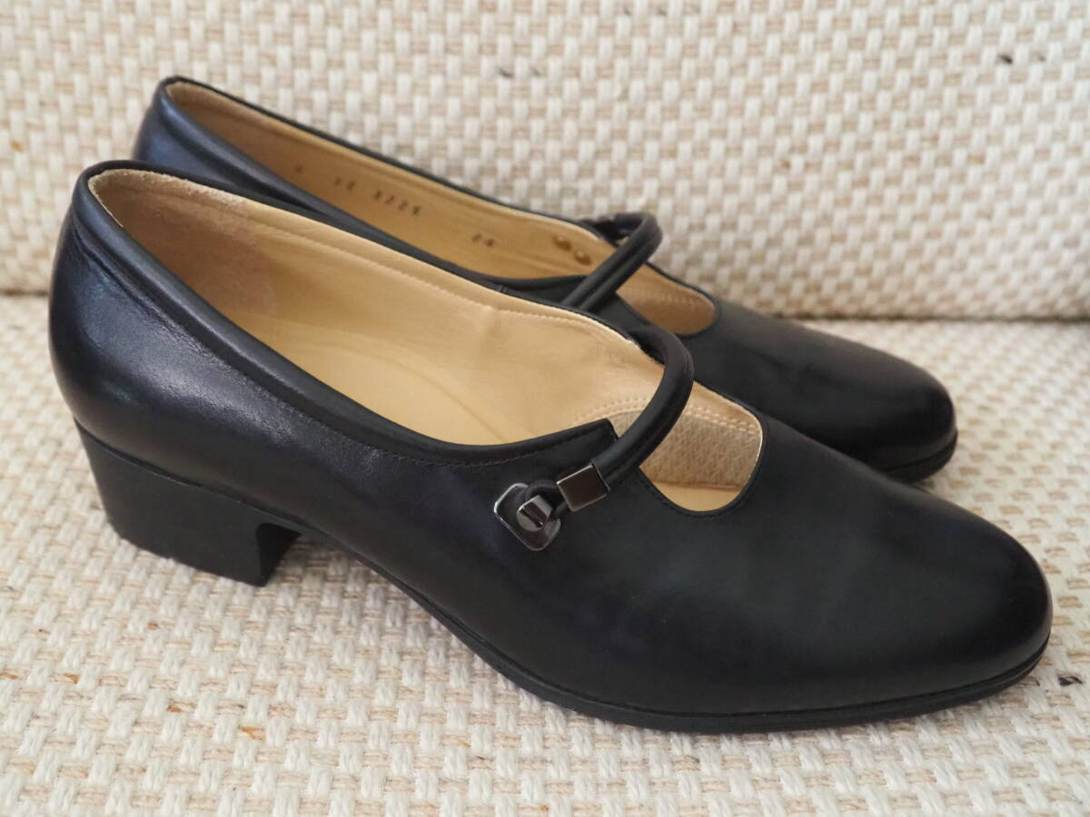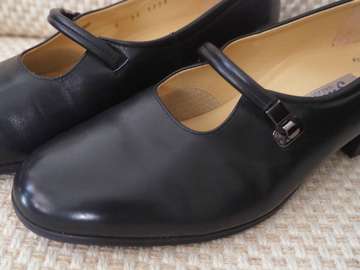 ★極美品 シアン Shian パンプス ストラップ付 24.0㎝ EEE★ブラック 3E★レザー 本革★