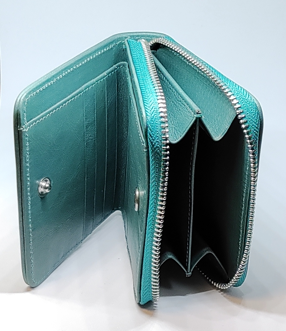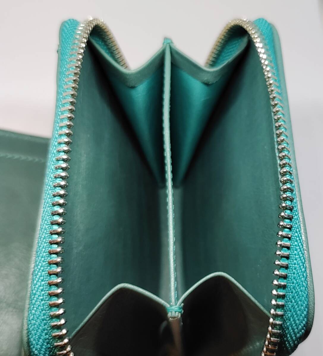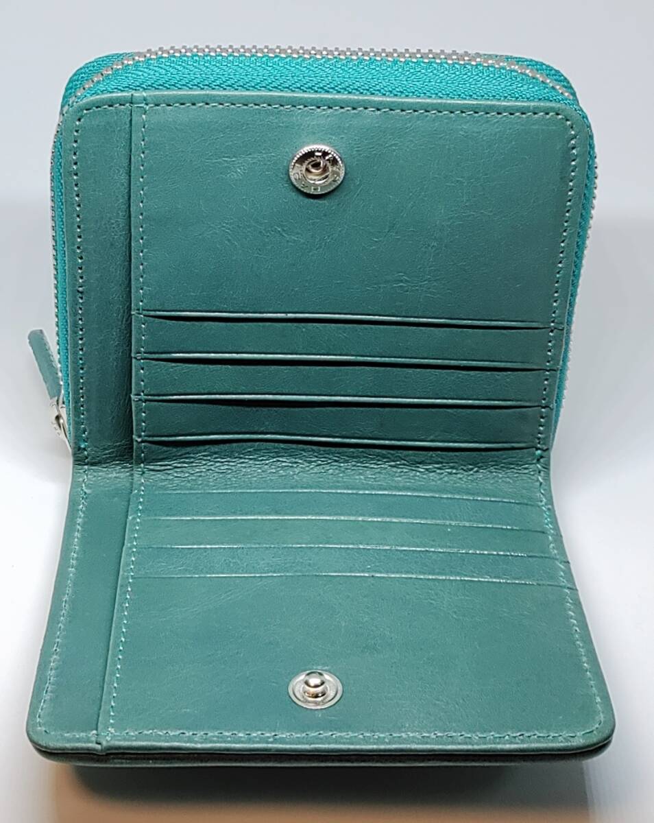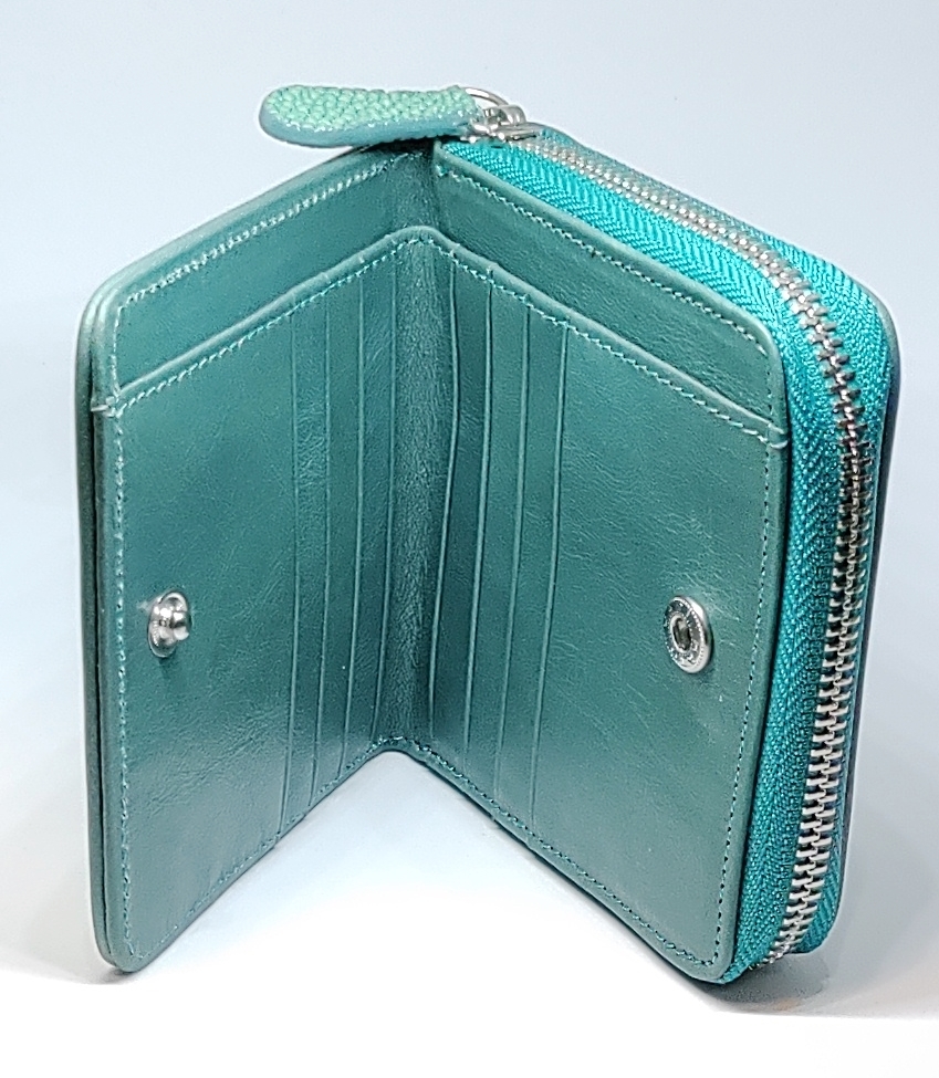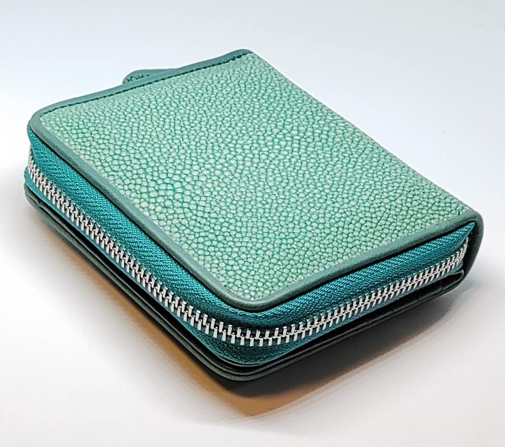 ★スティングレイ★ 2つ折り財布 ウォレット エイ革 海の宝石 ラウンドファスナー 高級レザー ターコイズグリーン 独立コインケース