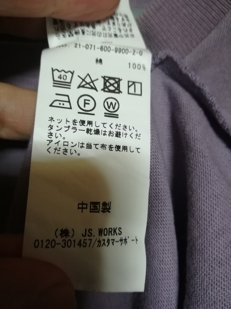 色は藤色(薄い紫とベージュの中間色)。ヘビーウェイトアメリカ綿100%、中国製。