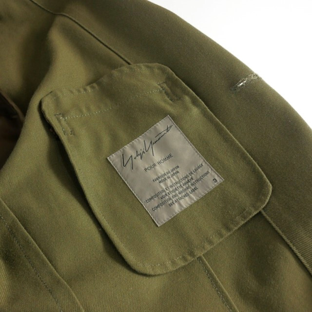 ヨウジヤマモトプールオム YOHJI YAMAMOTO POUR HOMME 16SS バックジップ テーラードジャケット ブレザー 長袖 3 カーキ 緑 HO-J71-042 メンズ