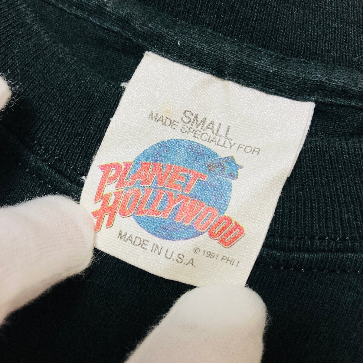 PLANET HOLLYWOOD USA製 ロゴ 刺繍 Tシャツ ブラック/黒 SMALL