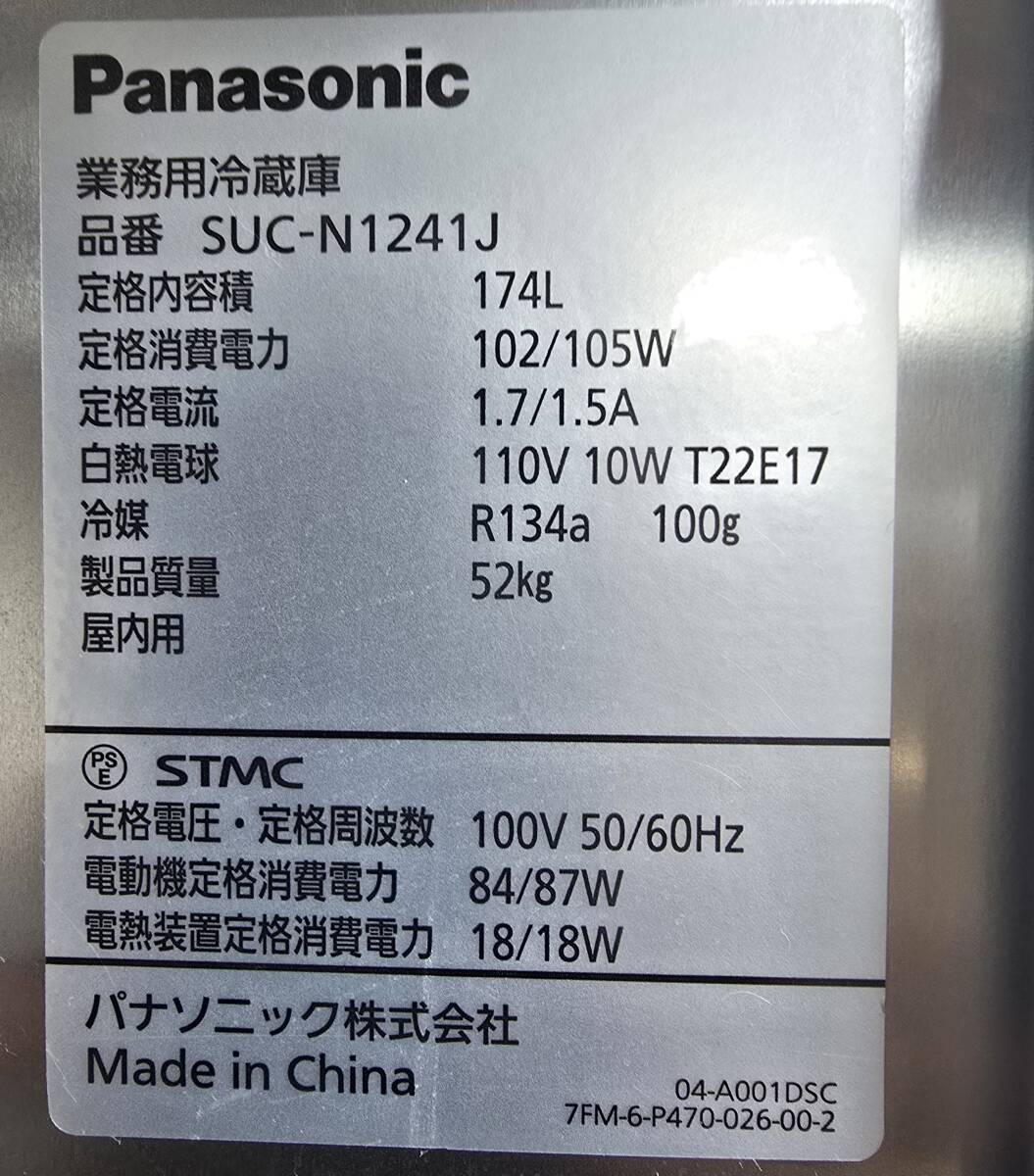 | パナソニック 台下冷蔵庫 SUC-N1241J 2020年製 100V 1200×450×800 業務用 飲食店 厨房機器 C2509-318 | ||