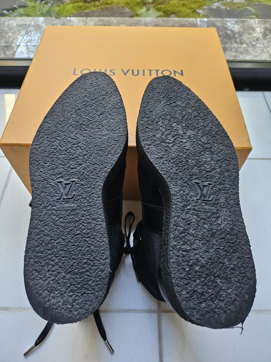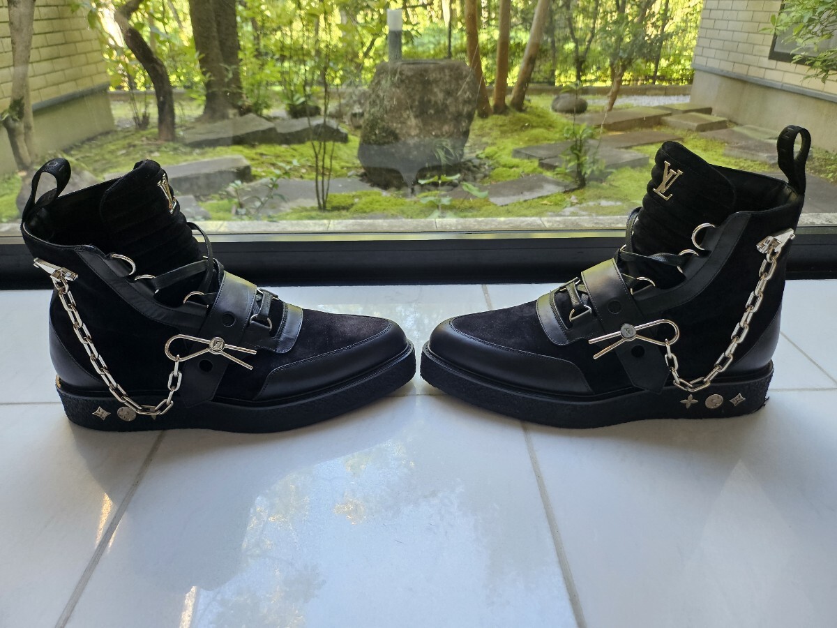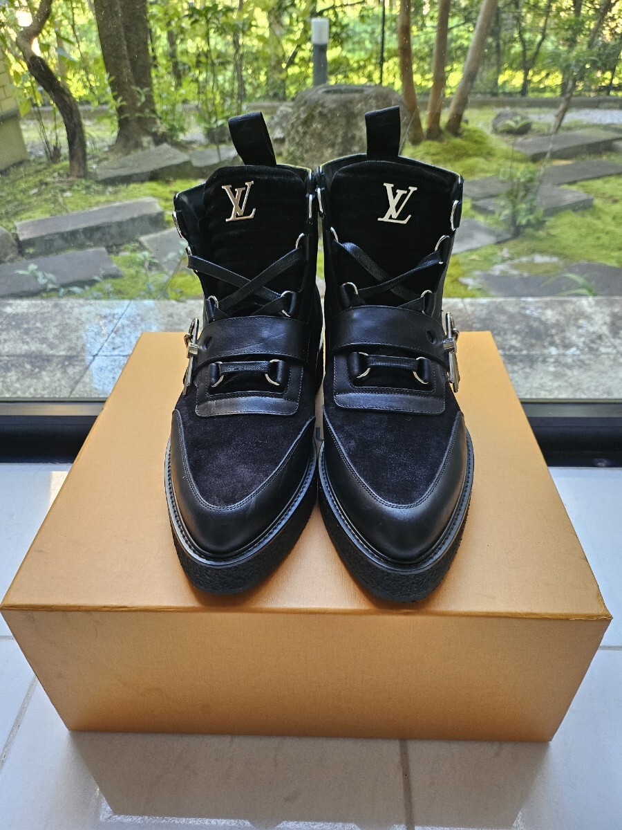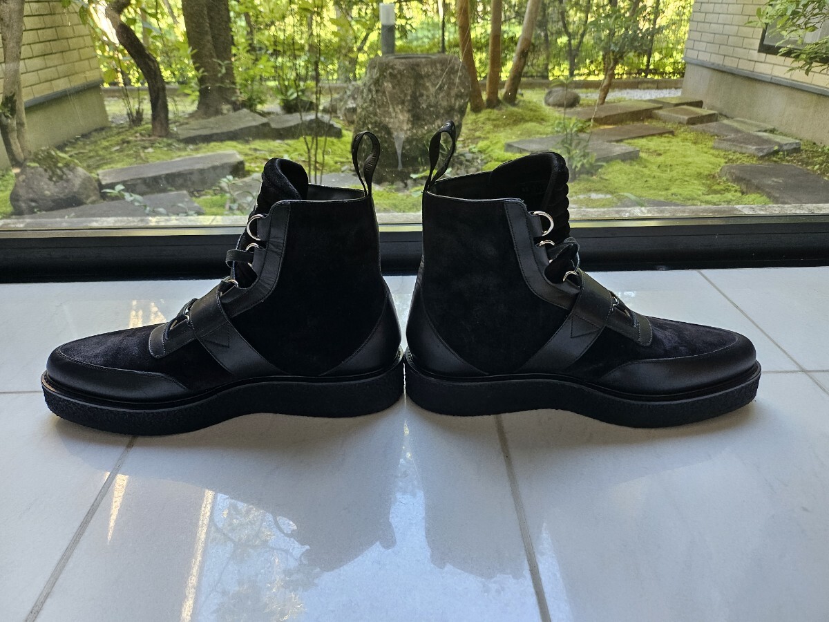 正規店購入後、一度着用して保管していたものです。履くにはもったいないほどの靴なので観賞用にしておりました。これからの季節にはピッタリだと思います。履く機会もないので出品しました。一度着用なので、ほぼ無傷です。当時は即完売したブーツです。確か、20万以上したと記憶しております。かなりインパクトあるブーツですので、他の方と違うファッション好きには良いのではないでしょうか?サイズは、8になります。写真ではスェード部分が汚れているように見えますが、光の反射によるものです。商品は写真に写っているもの全てになります。なお、素人保管であり神経質な方の入札はご遠慮ください。また、ノークレームノーリターンでお願いします。