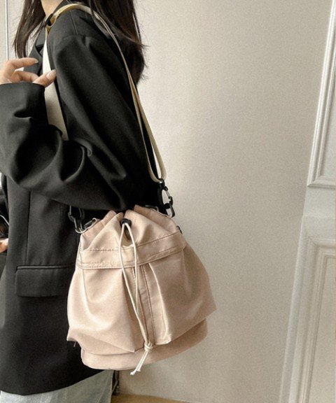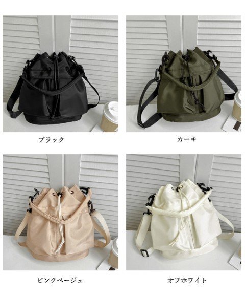 ナイロン素材なので傷や汚れに強く、長年お使いいただけるバケットバッグです。