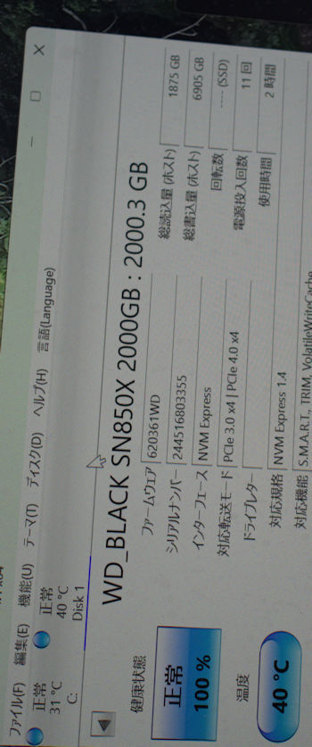 Western Digital WDS200T2X0ESN850X WD BLACK M.2 SSD 内蔵 2TB NVMe PCIe Gen4 x4 (読取り最大 7300MB/s 書込み最大 6600MB/s) です。