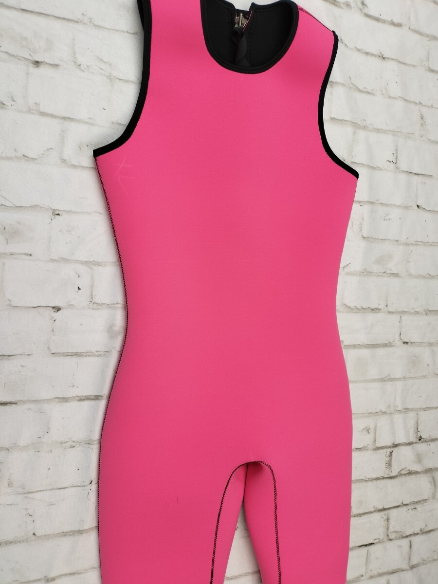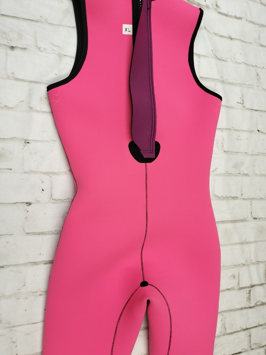3.5ミリ両面ジャージ、サイズXL、後ろファスナー、裏ジャージカラー、ピンク色系、両面縫い、切り口、首、肩オペロンテープパイピング(ブラック)、太もも部分はストレート、サイズ目安、サイズXL、身長180前後、体重目安71~80、胸囲95~102、腹囲77~85、尻囲96~102、 太もも54~57、ひざ上39~42、ぐらいです