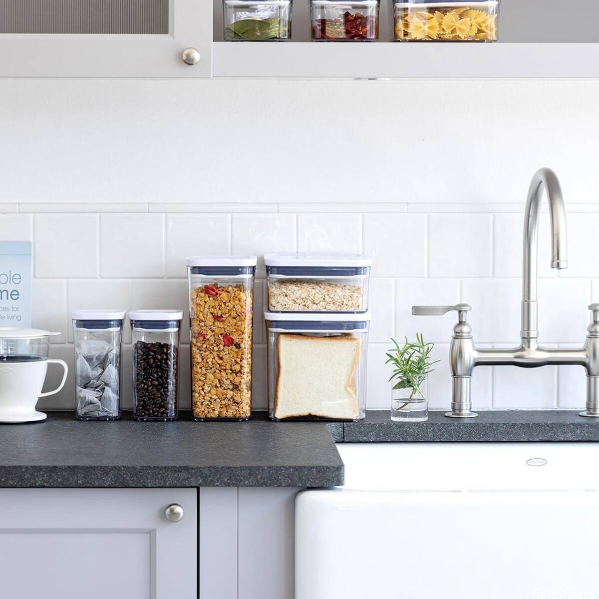 OXO ポップコンテナは、片手でボタンをプッシュするだけで簡単に開閉できる乾燥食品用 保存容器