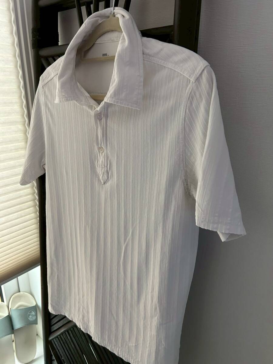 送料無料 GAP ギャップ ポロシャツ サイズS M相当 半袖 白 ホワイト Wihte ワンオーナー ビジネス ストライプ ボーダー 美品